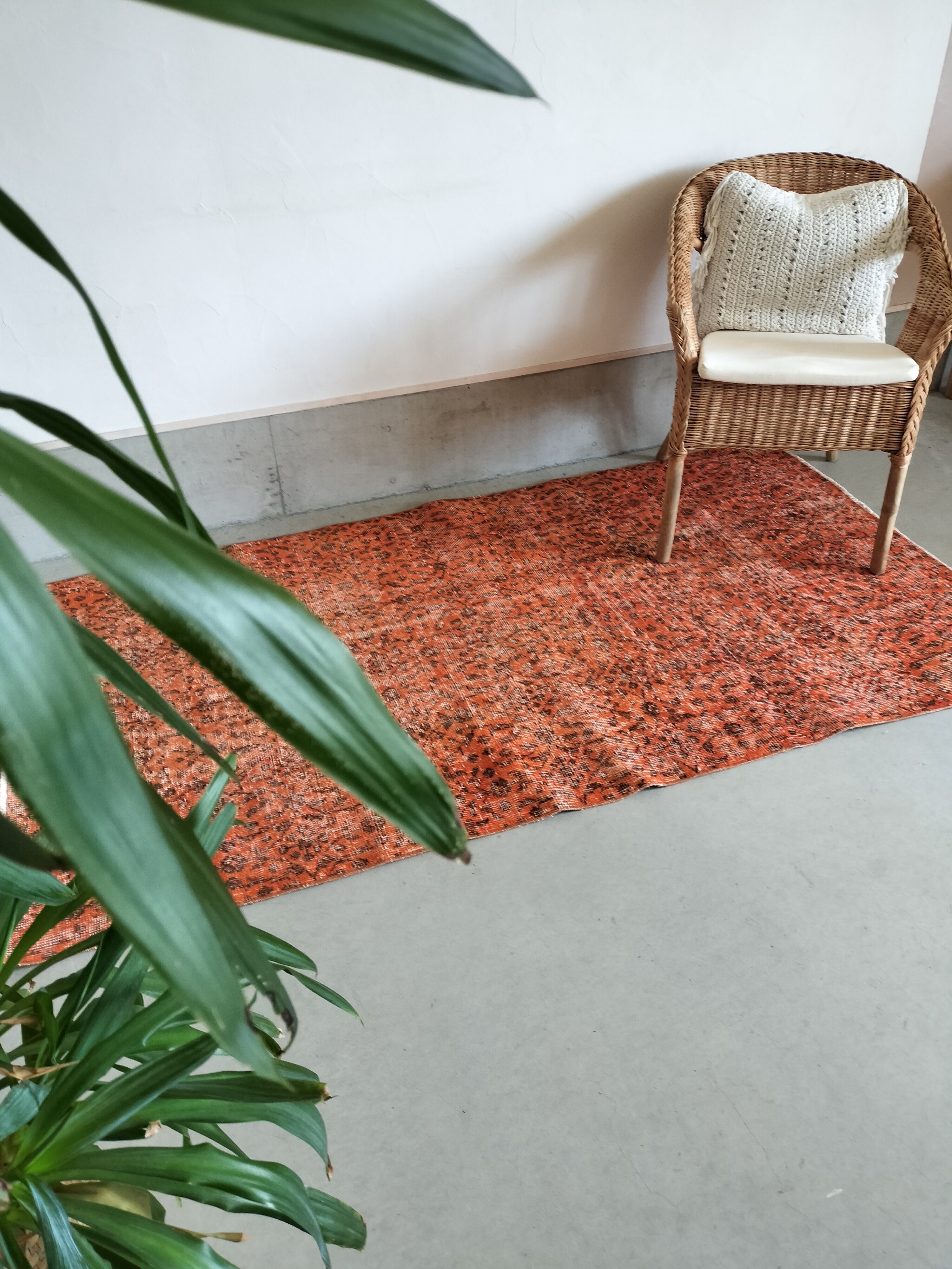 アプリコットカラーでオーバーダイ(後染め)されたヴィンテージトルコラグ。