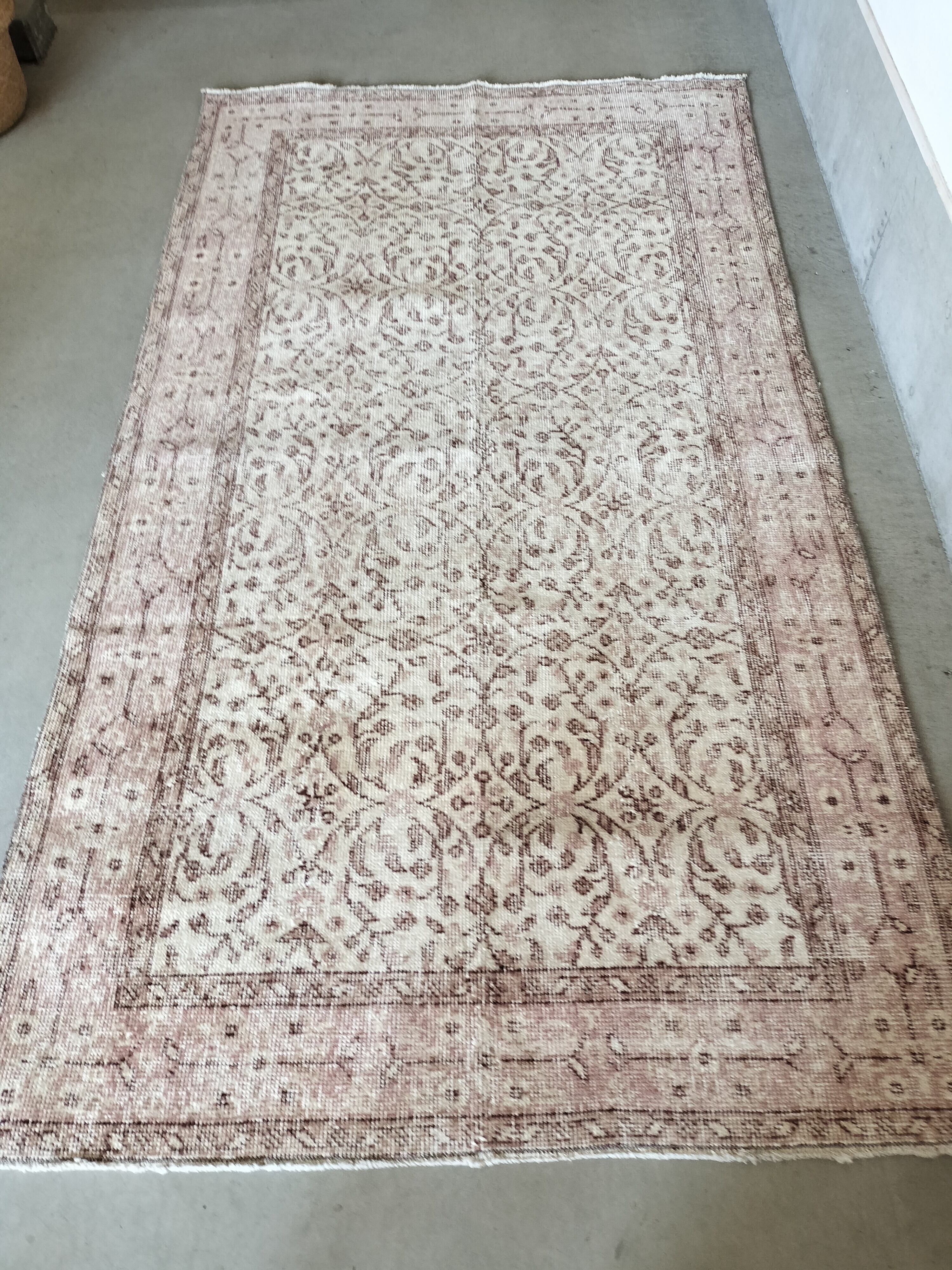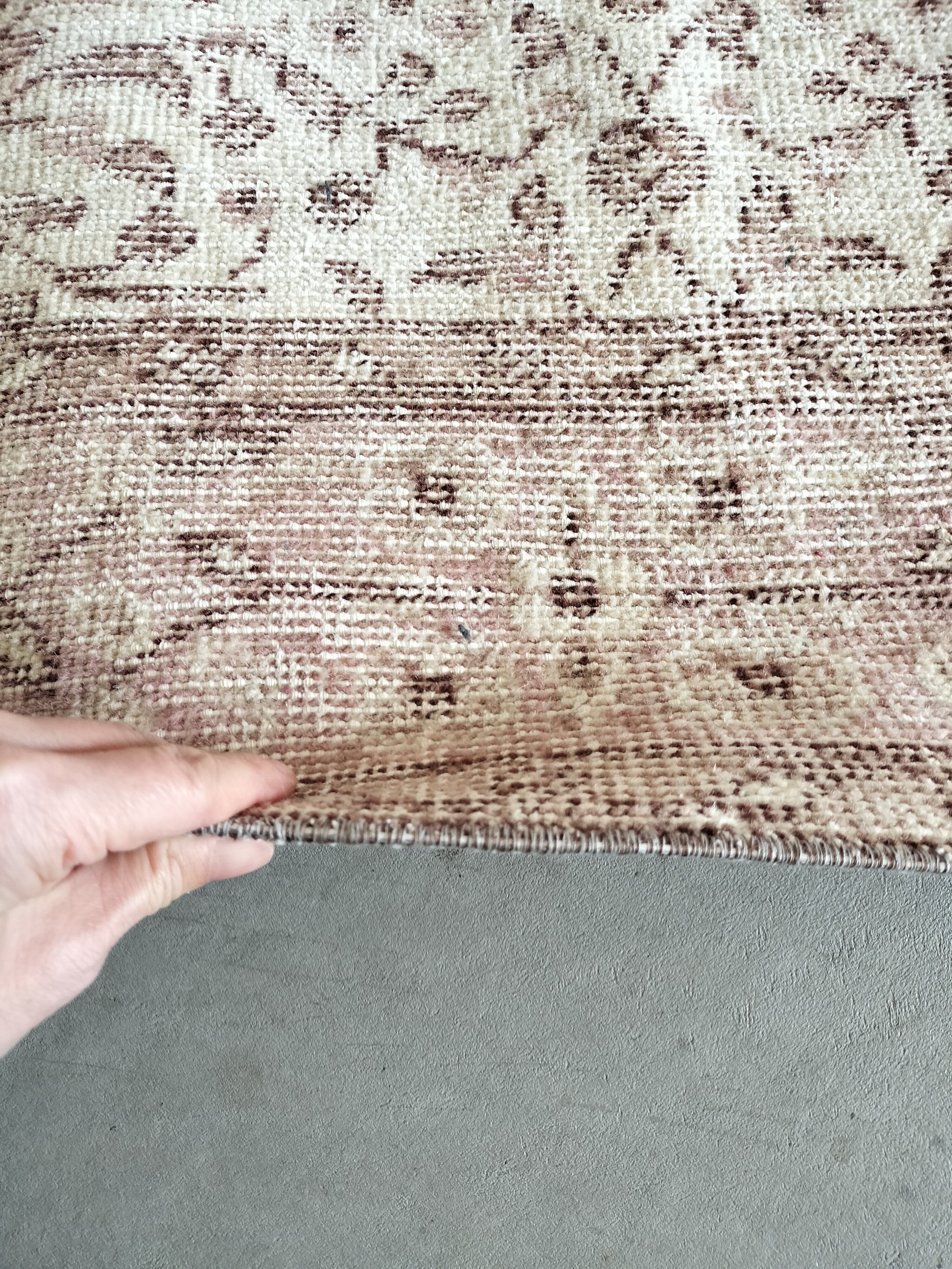 爽やかなパステルピンクがぱっとお部屋を明るくしてくれるヴィンテージトルコラグ。