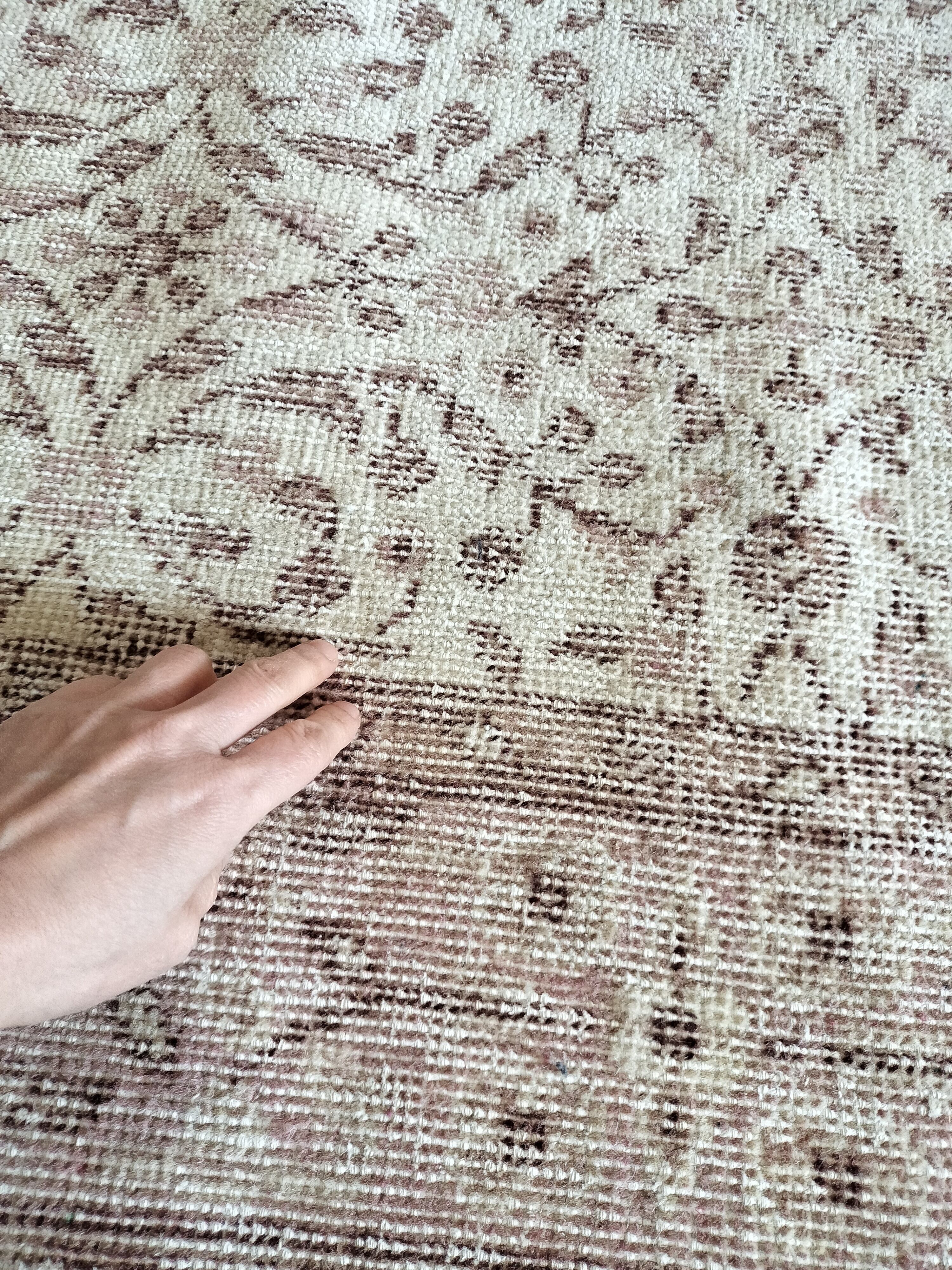 ブラウンやパステルピンクが模様に入り、ヴィンテージラグならではの上品さの中に可愛らしさもあります。