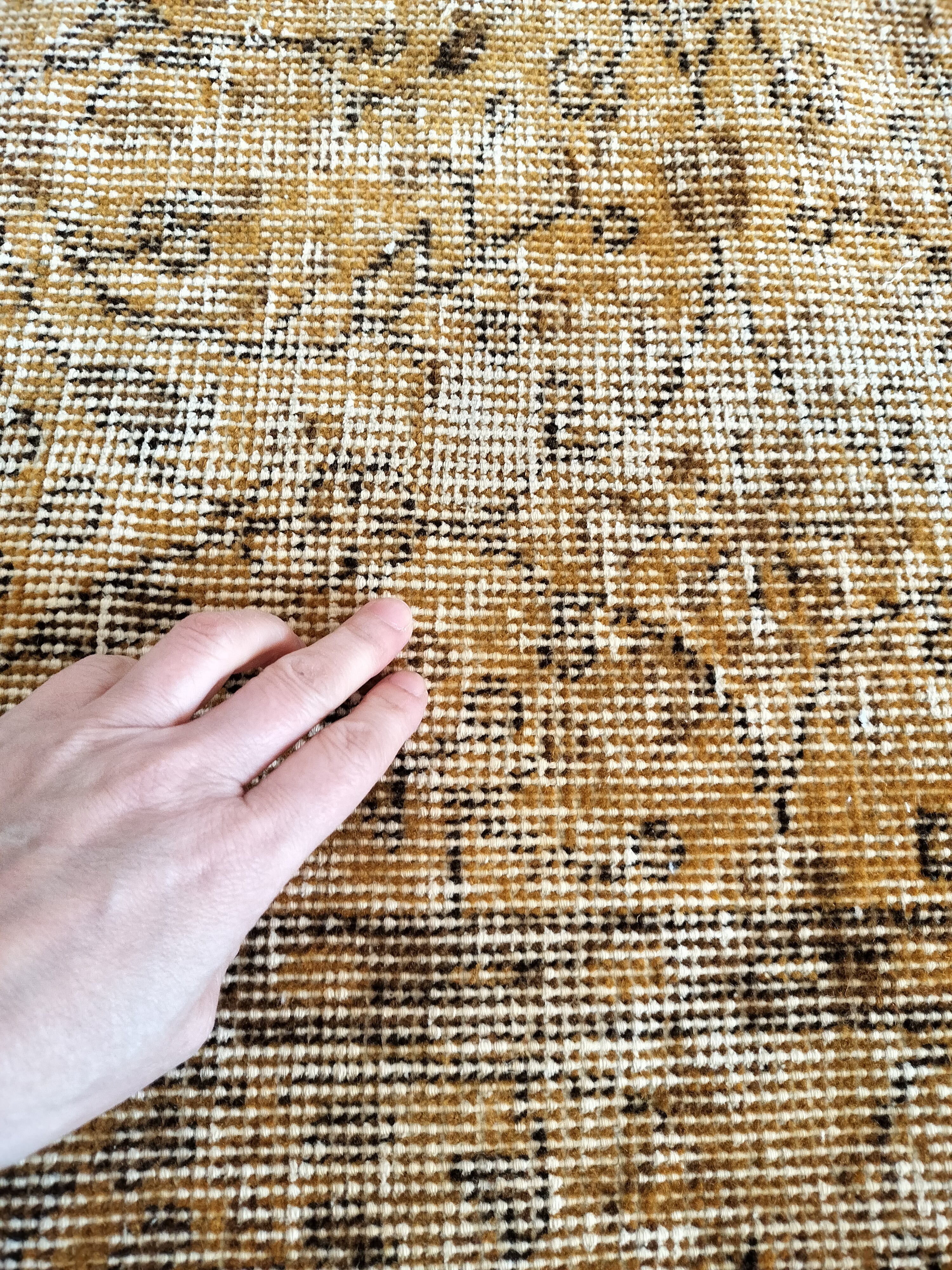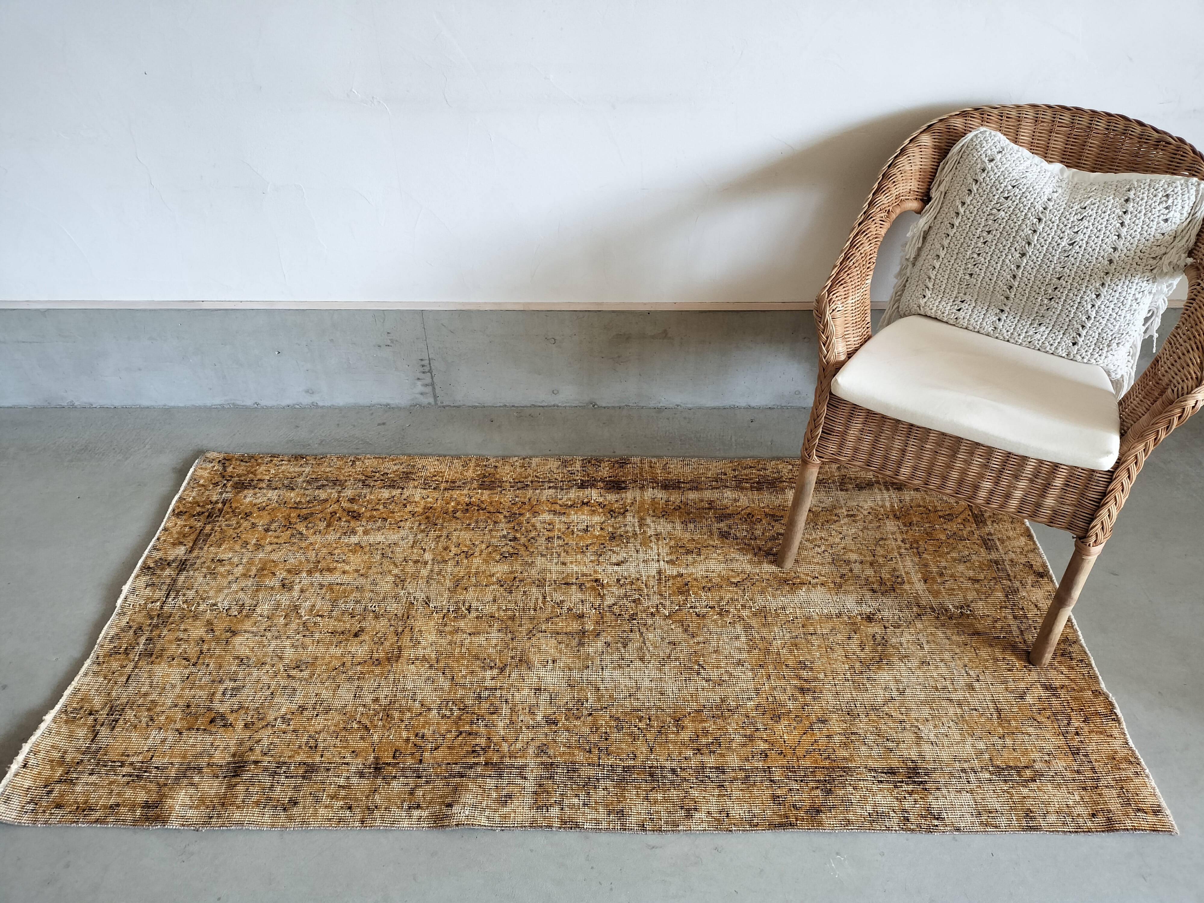 マスタードイエローでオーバーダイ(後染め)されたヴィンテージトルコラグ。