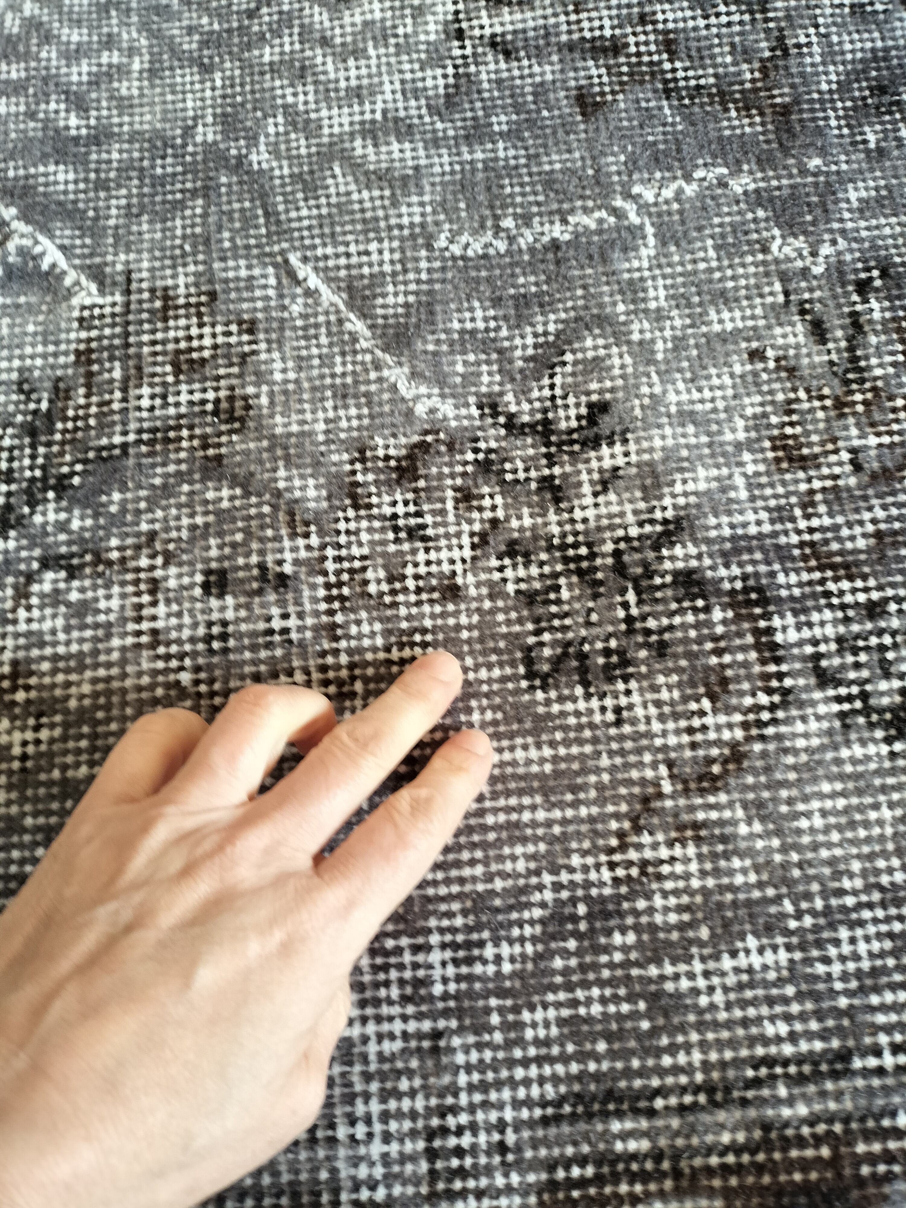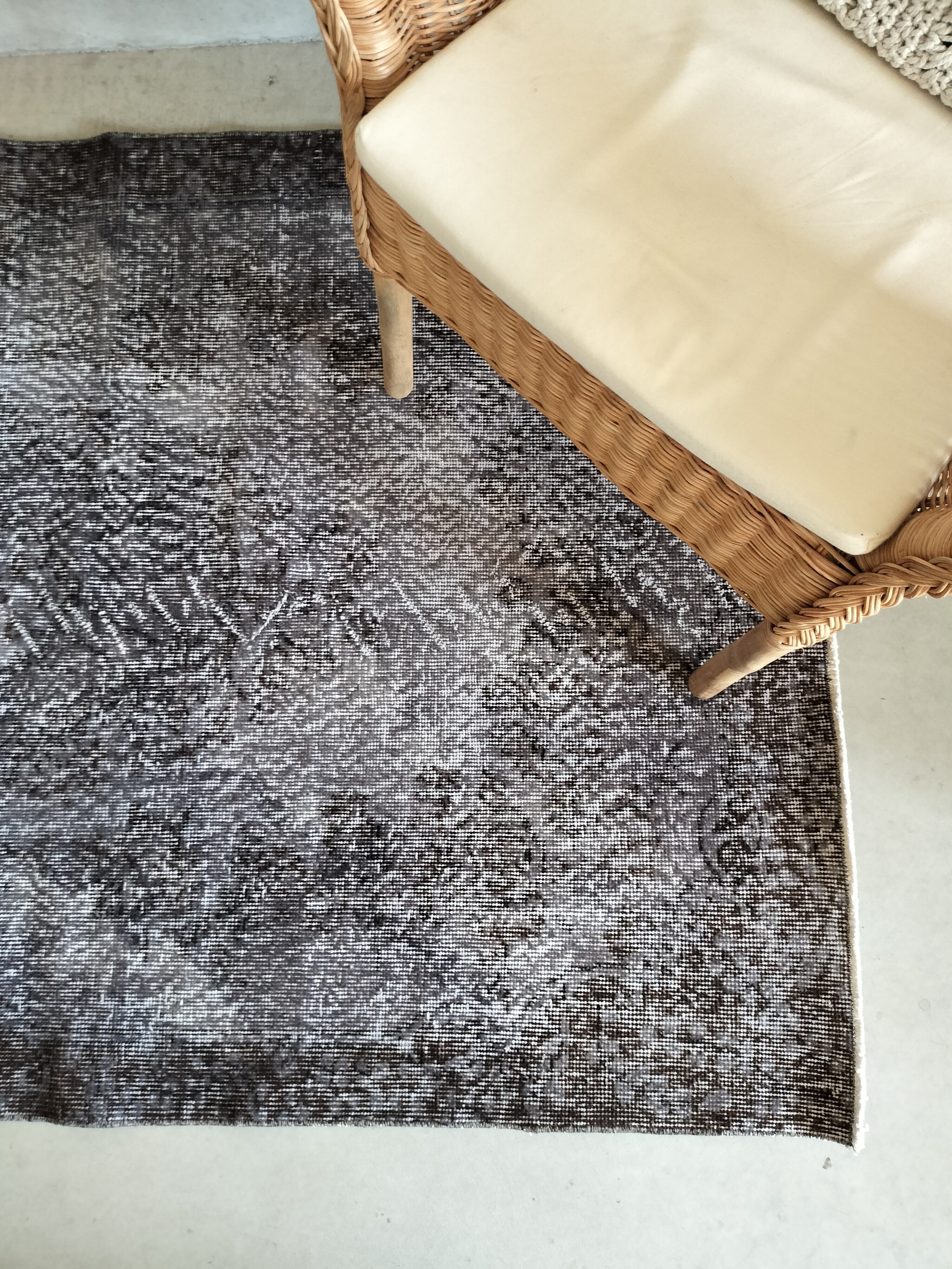 ブルーグレーでオーバーダイされた人気色のヴィンテージトルコラグ。