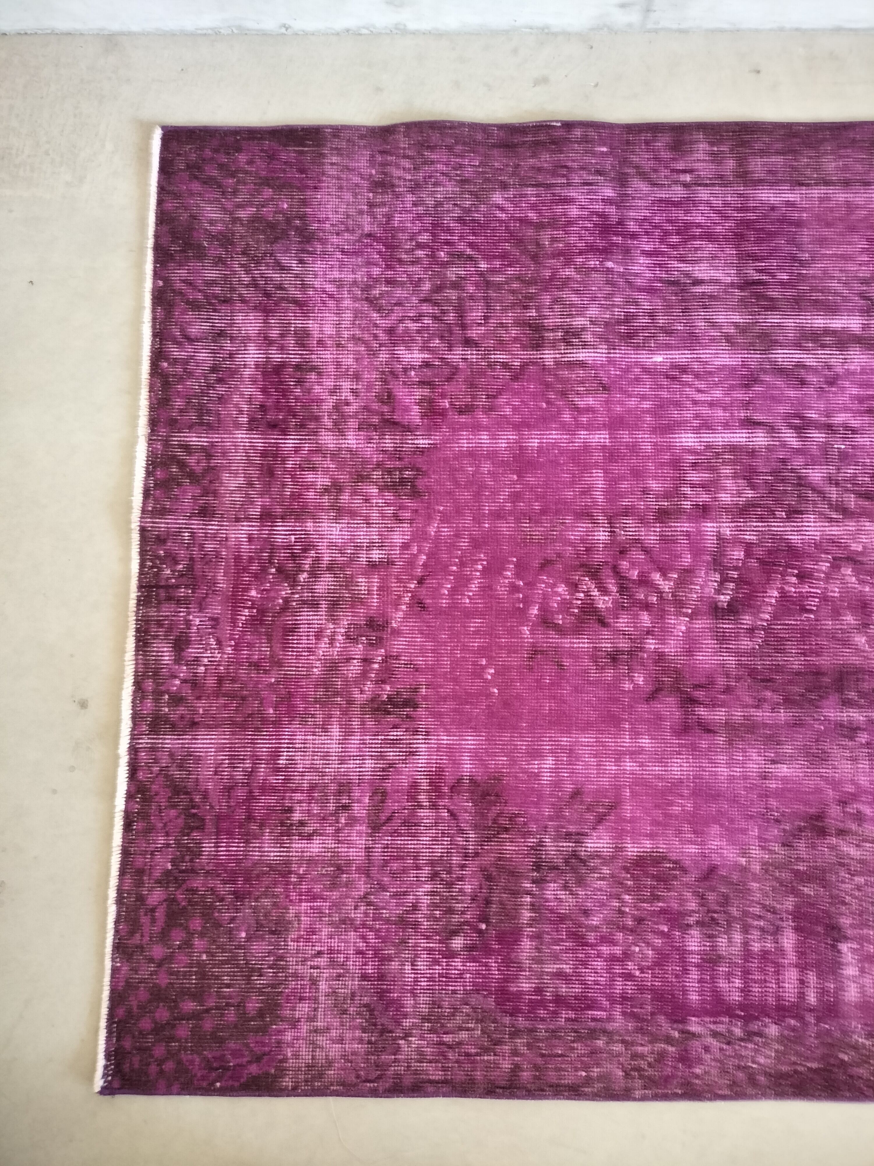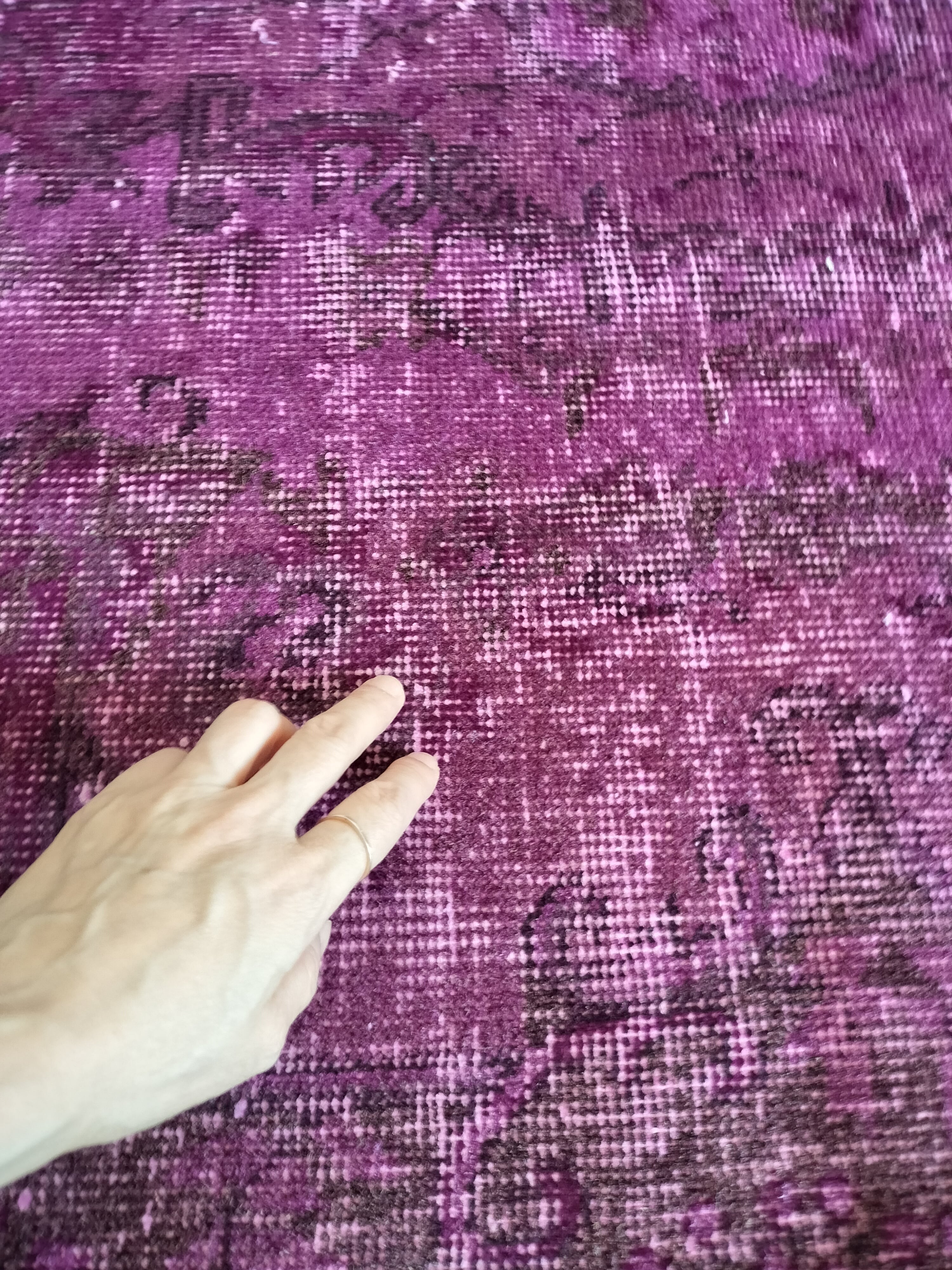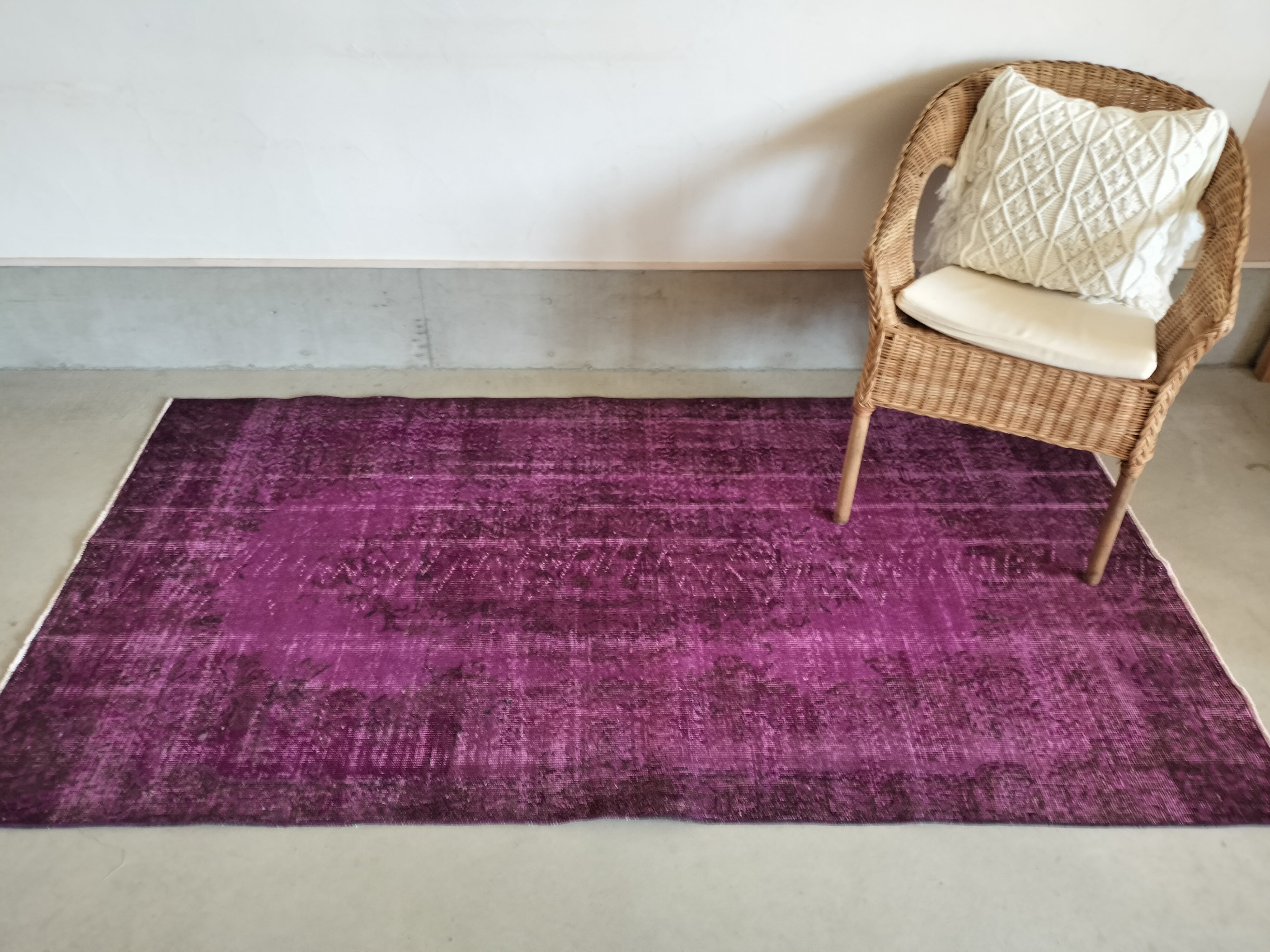 深みのあるディープパープルでオーバーダイされたヴィンテージトルコラグ。