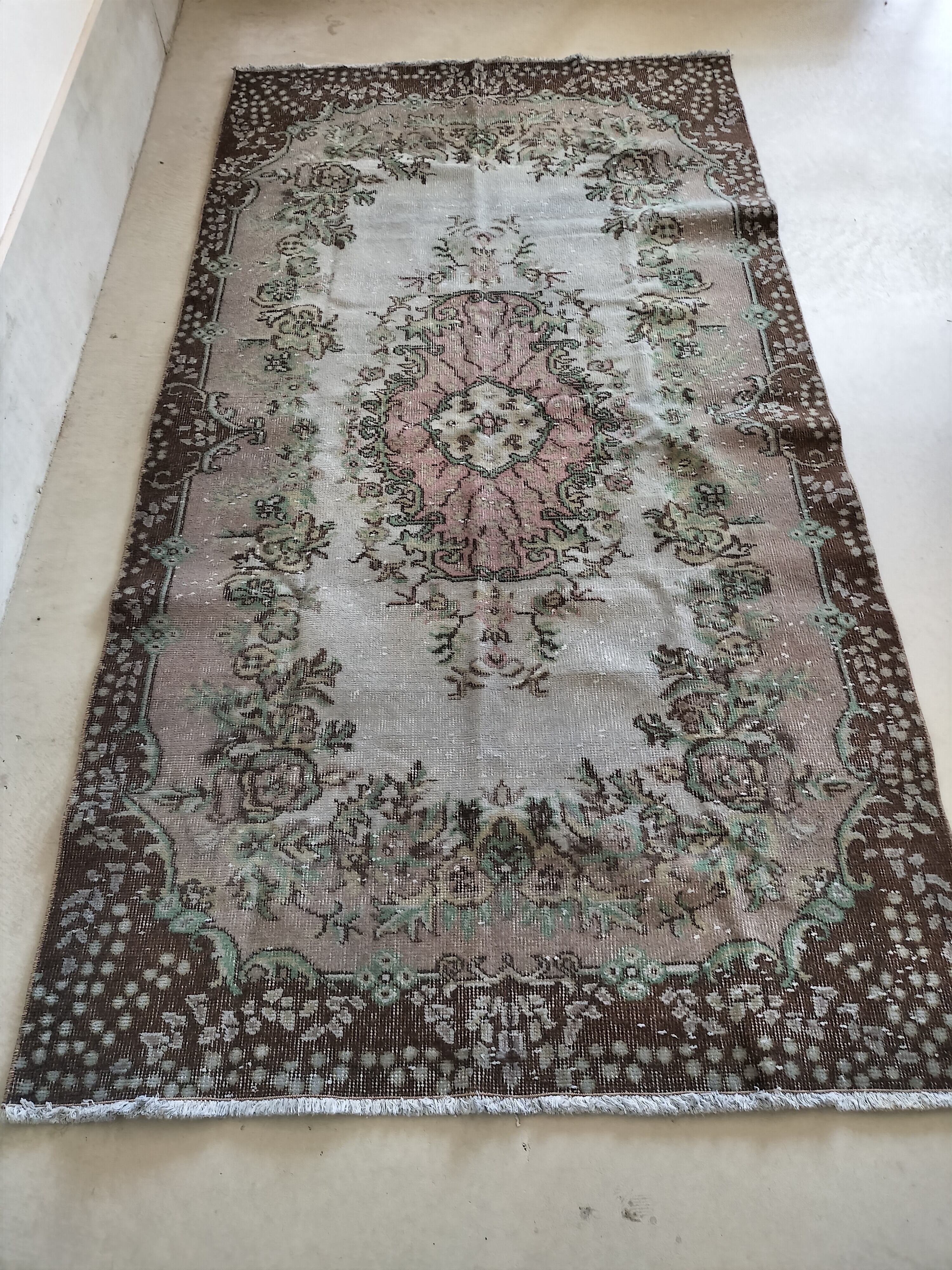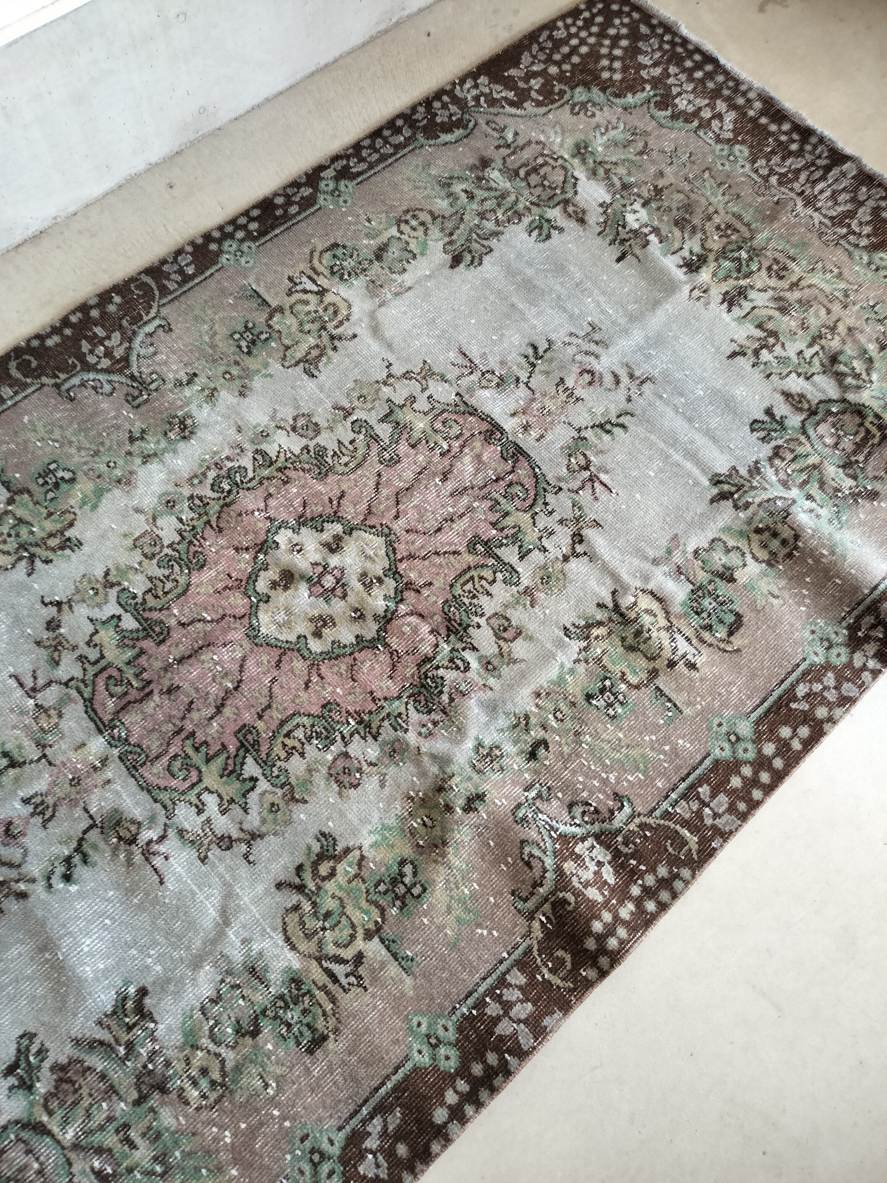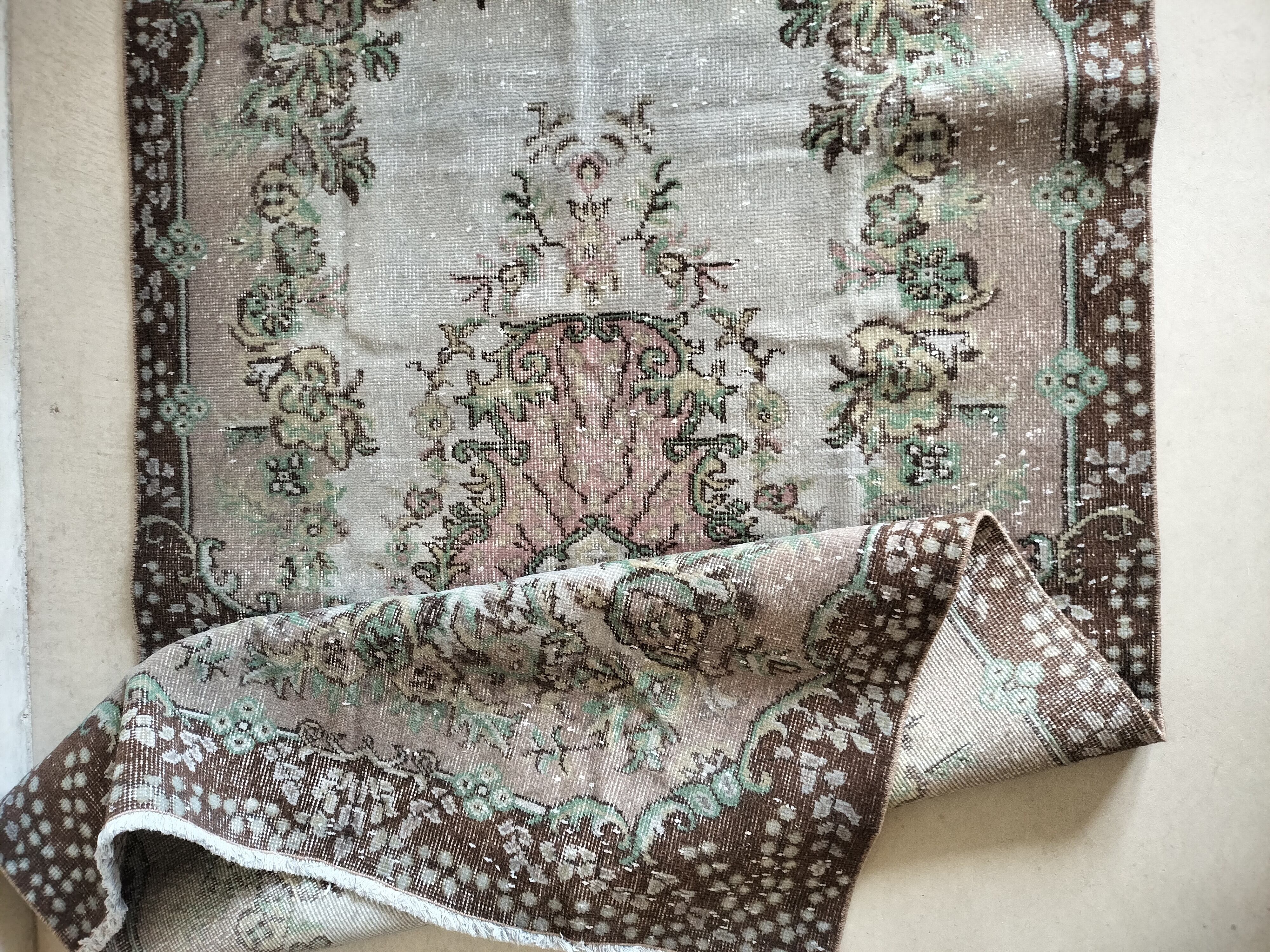 グレーにオーバーダイ(後染め)されたヴィンテージのトルコラグ。