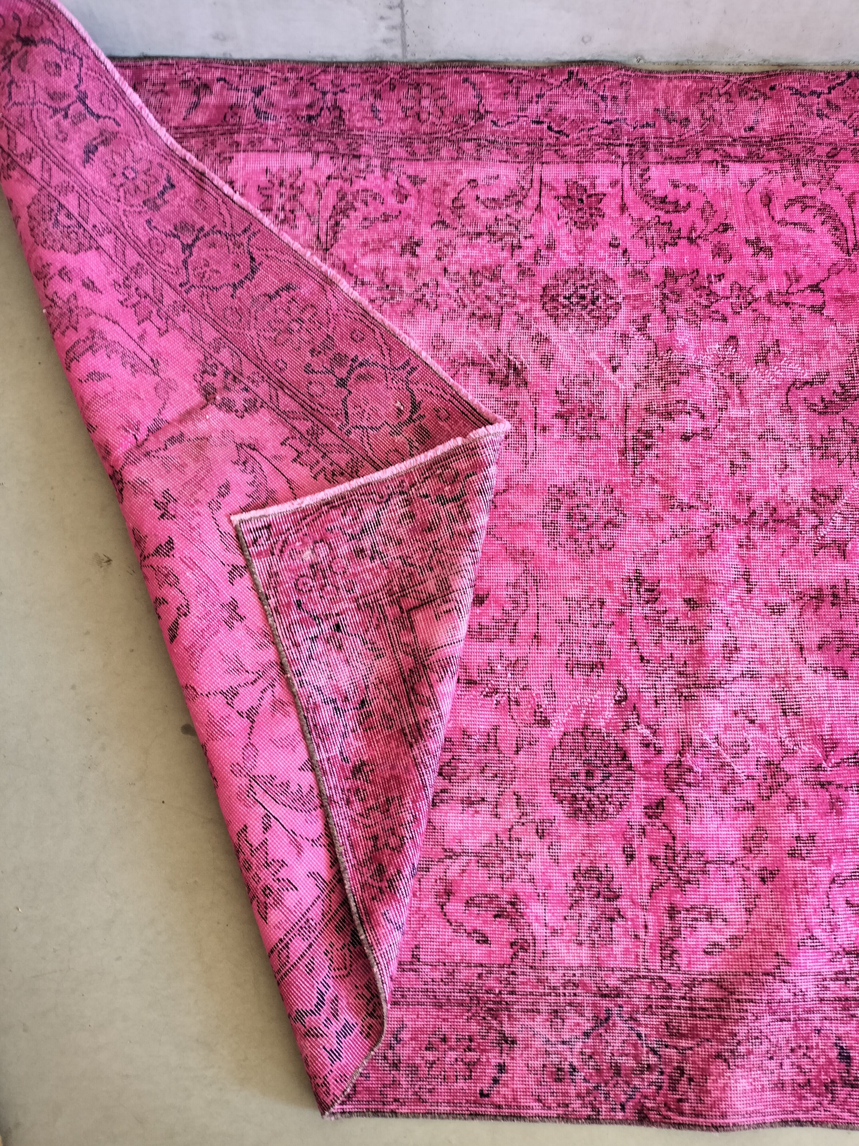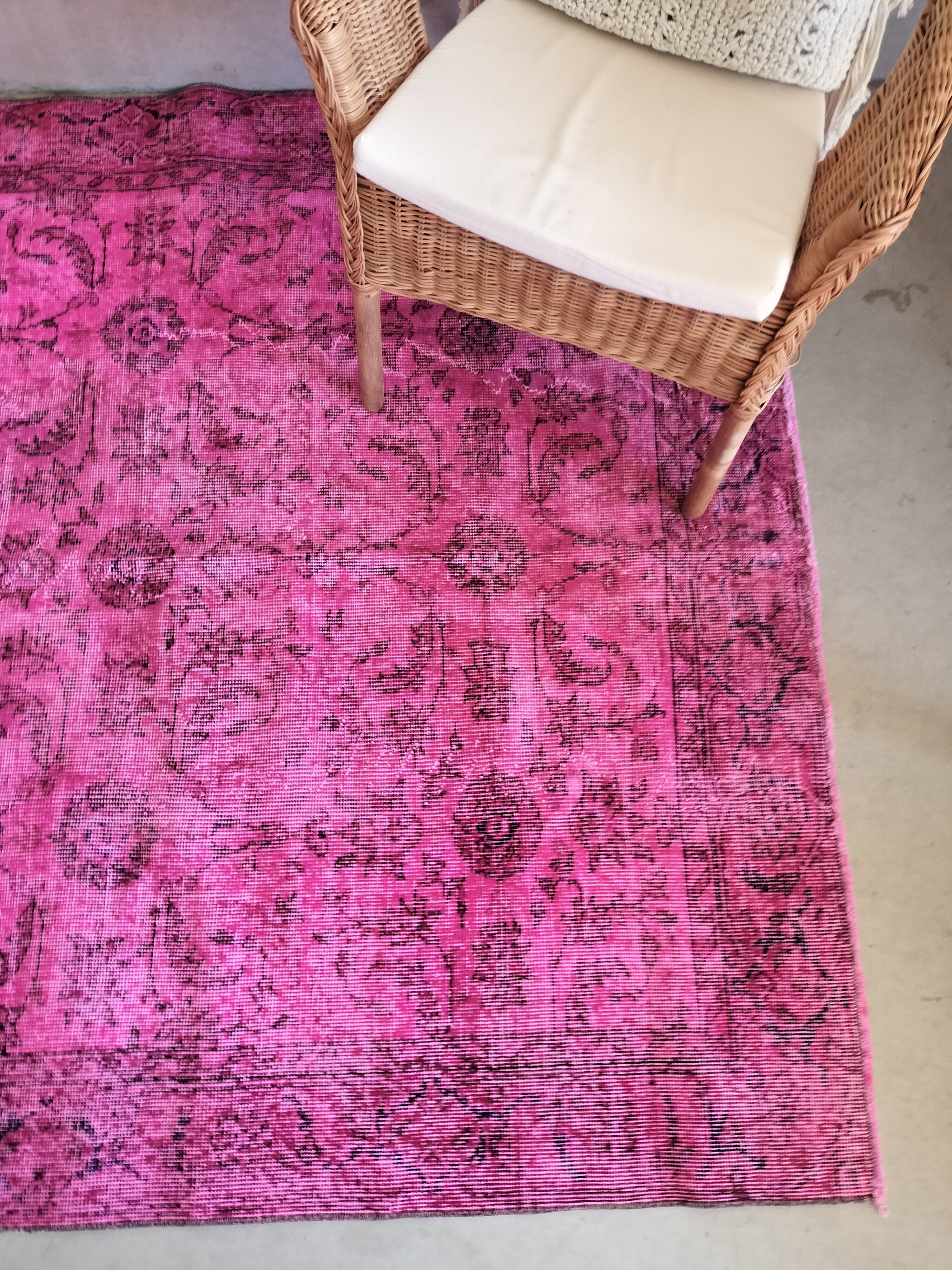 鮮やかなマゼンタピンクにオーバーダイされたヴィンテージトルコラグ。
