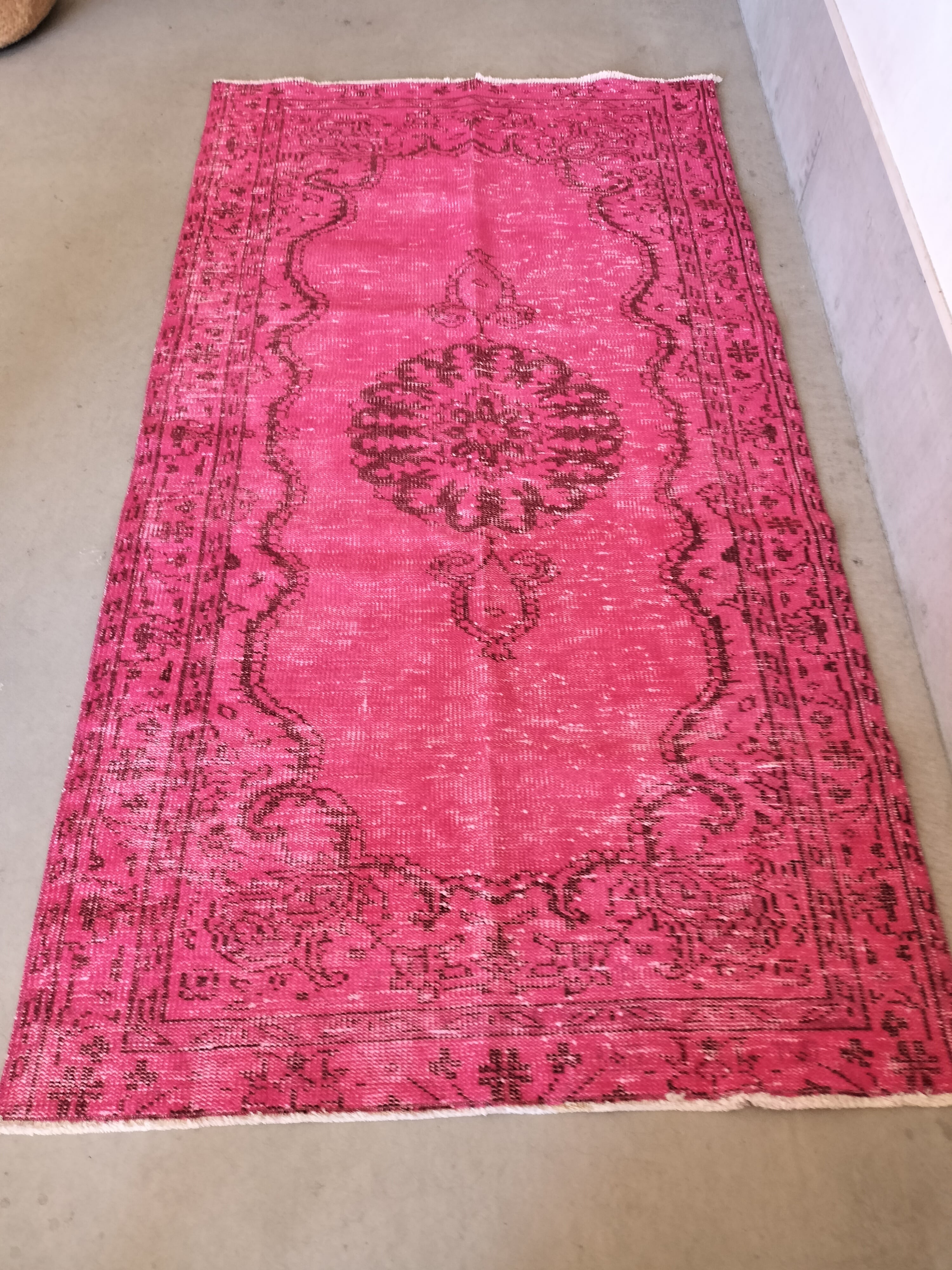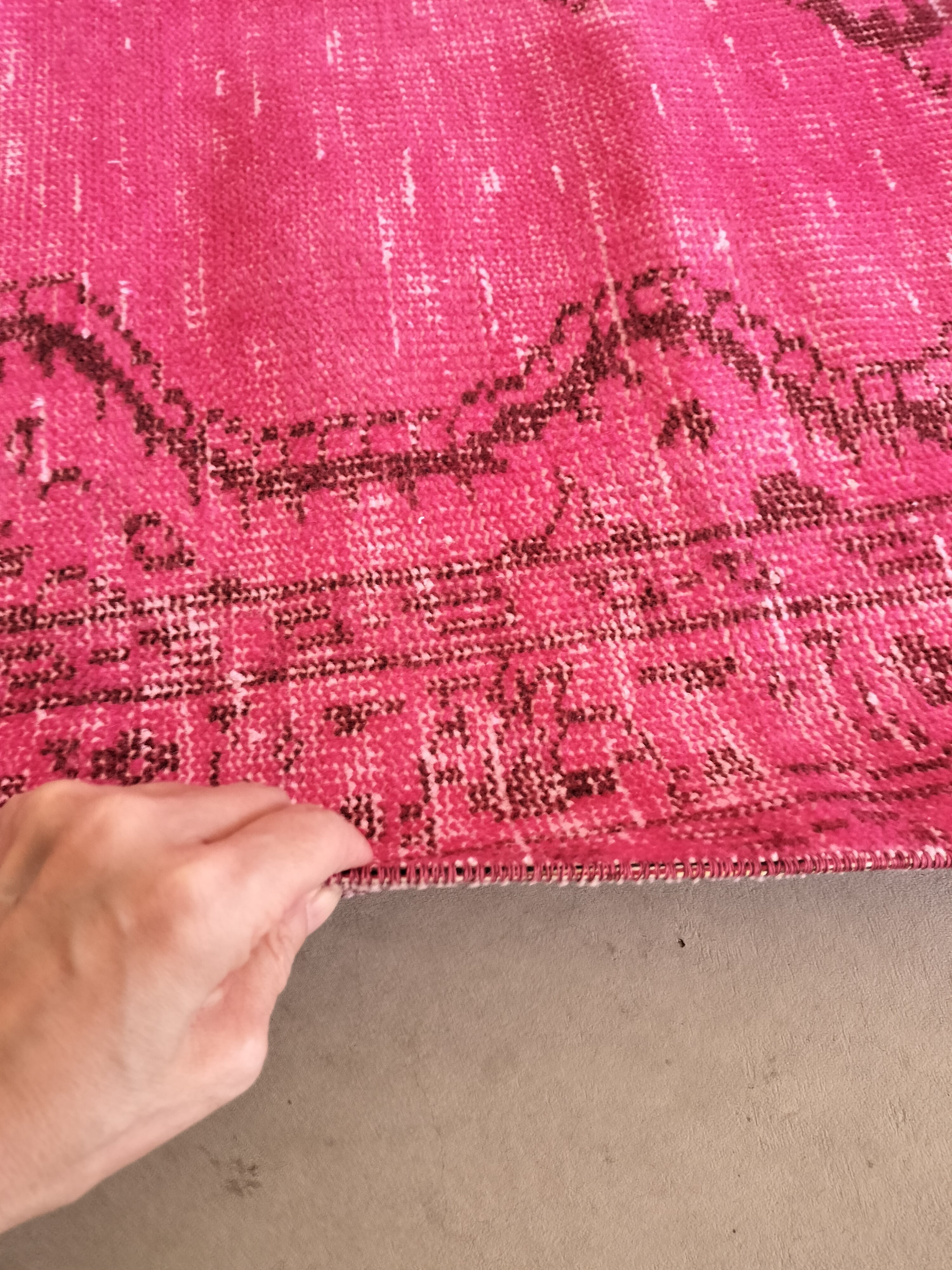 鮮やかなマゼンタピンクにオーバーダイされたヴィンテージトルコラグ。