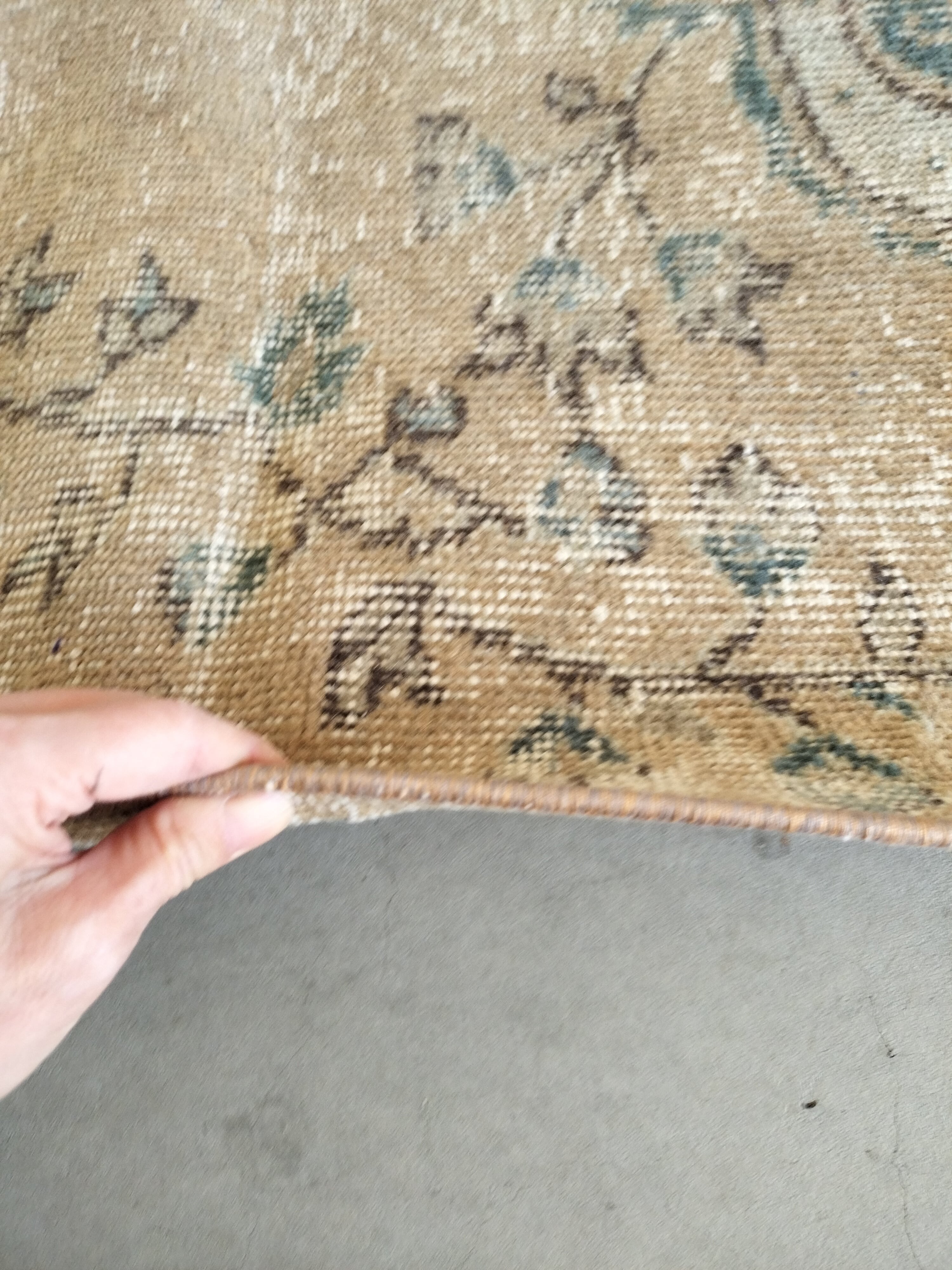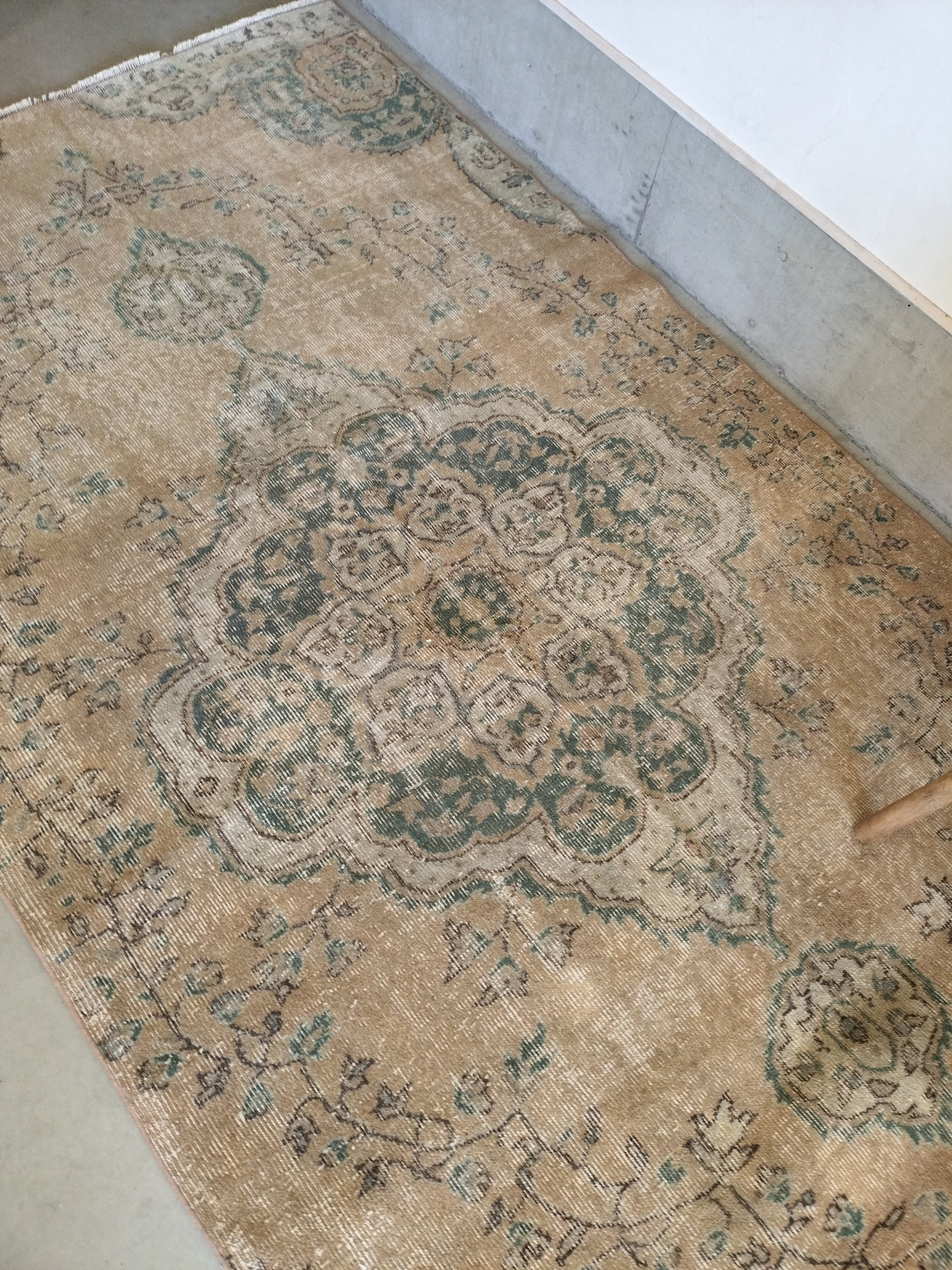 ヴィンテージ感の素敵なオレンジ味のあるくすみベージュがベースのトルコラグ。