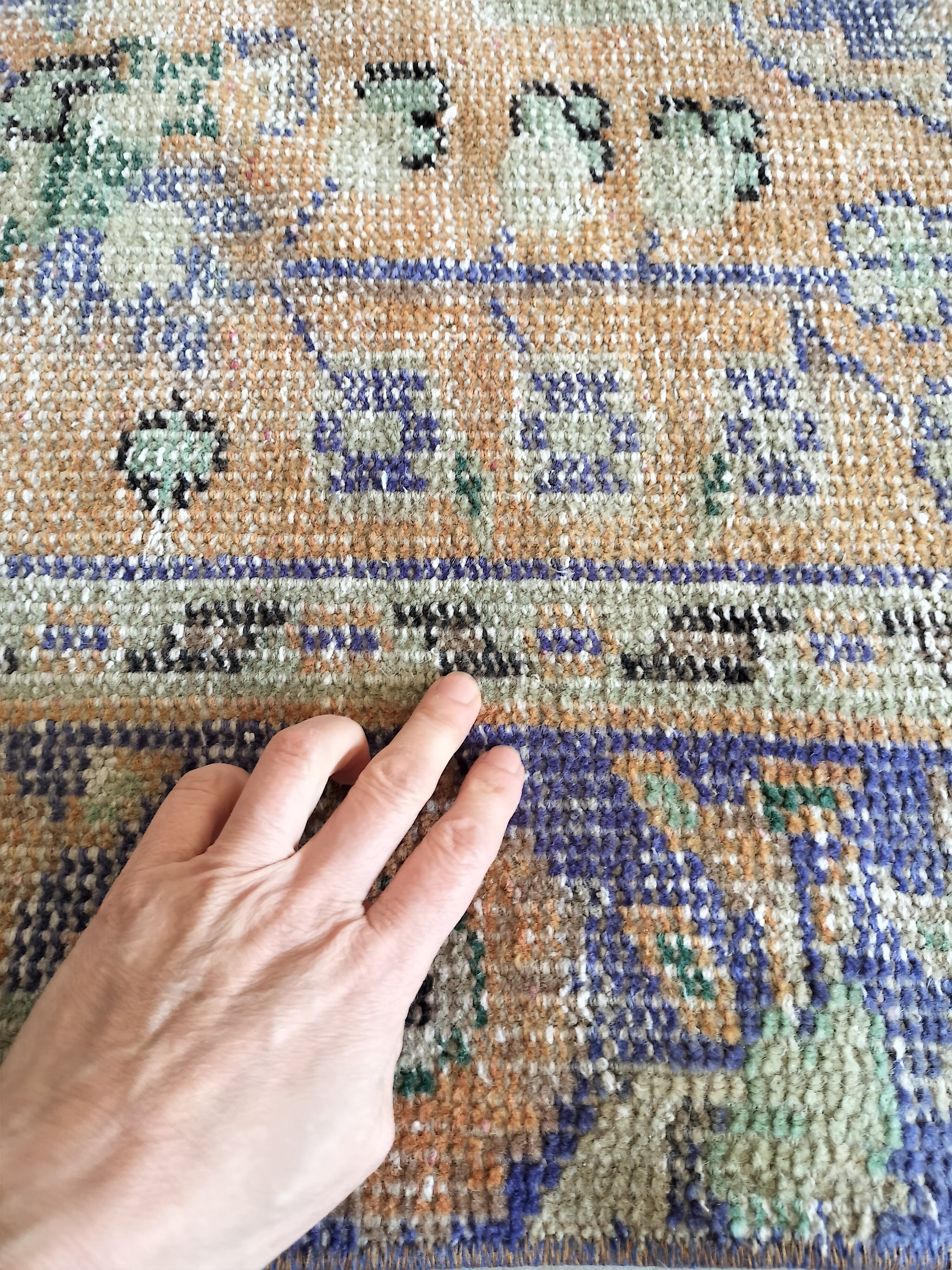 1980年代に織られたヴィンテージのトルコラグ。オーガニックウール、オーガニックコットン(裏糸)を使い、自然染料及び野菜染料で色づけされています。