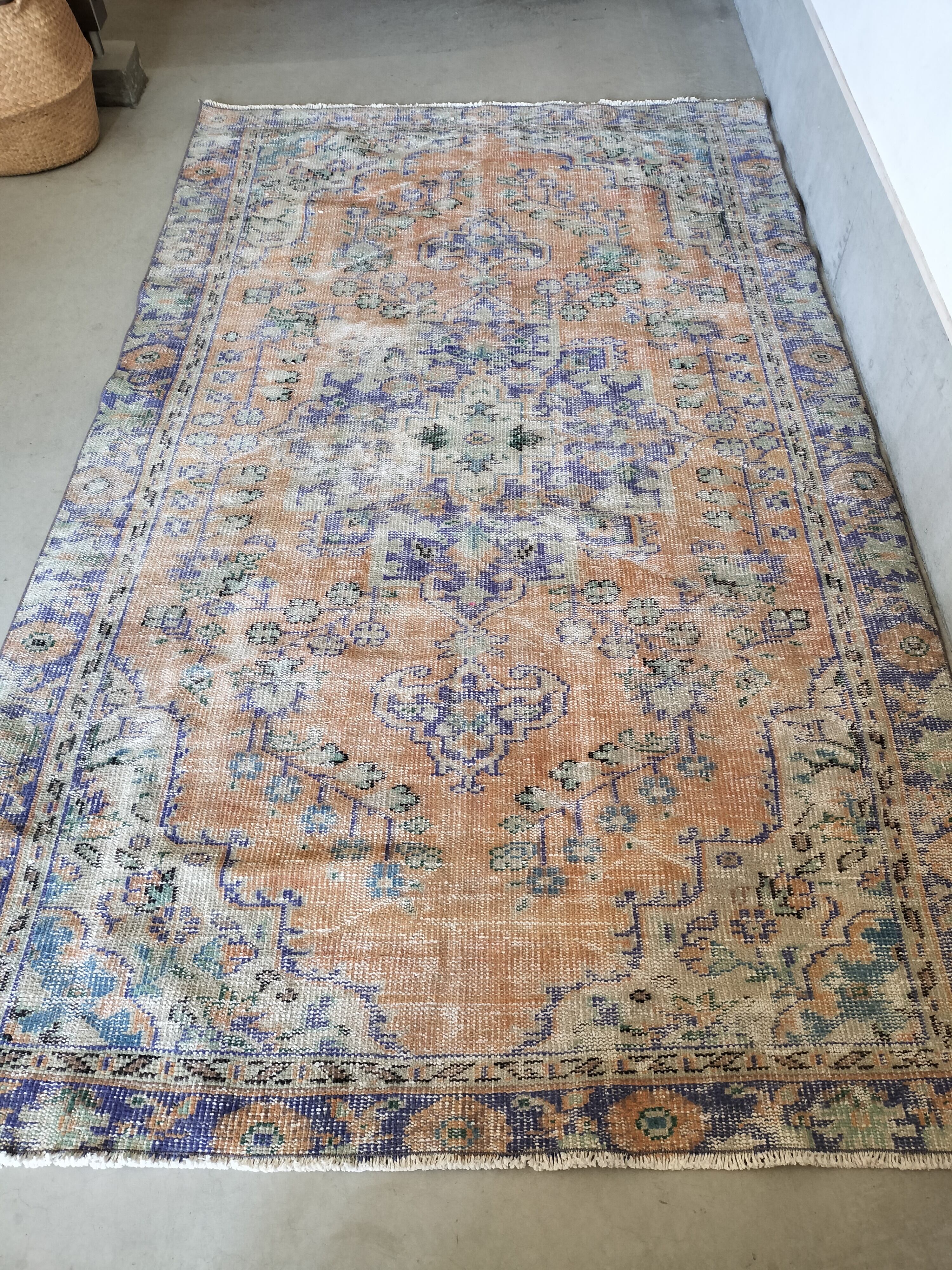 ヴィンテージ感の素敵なくすみオレンジがベースのトルコラグ。