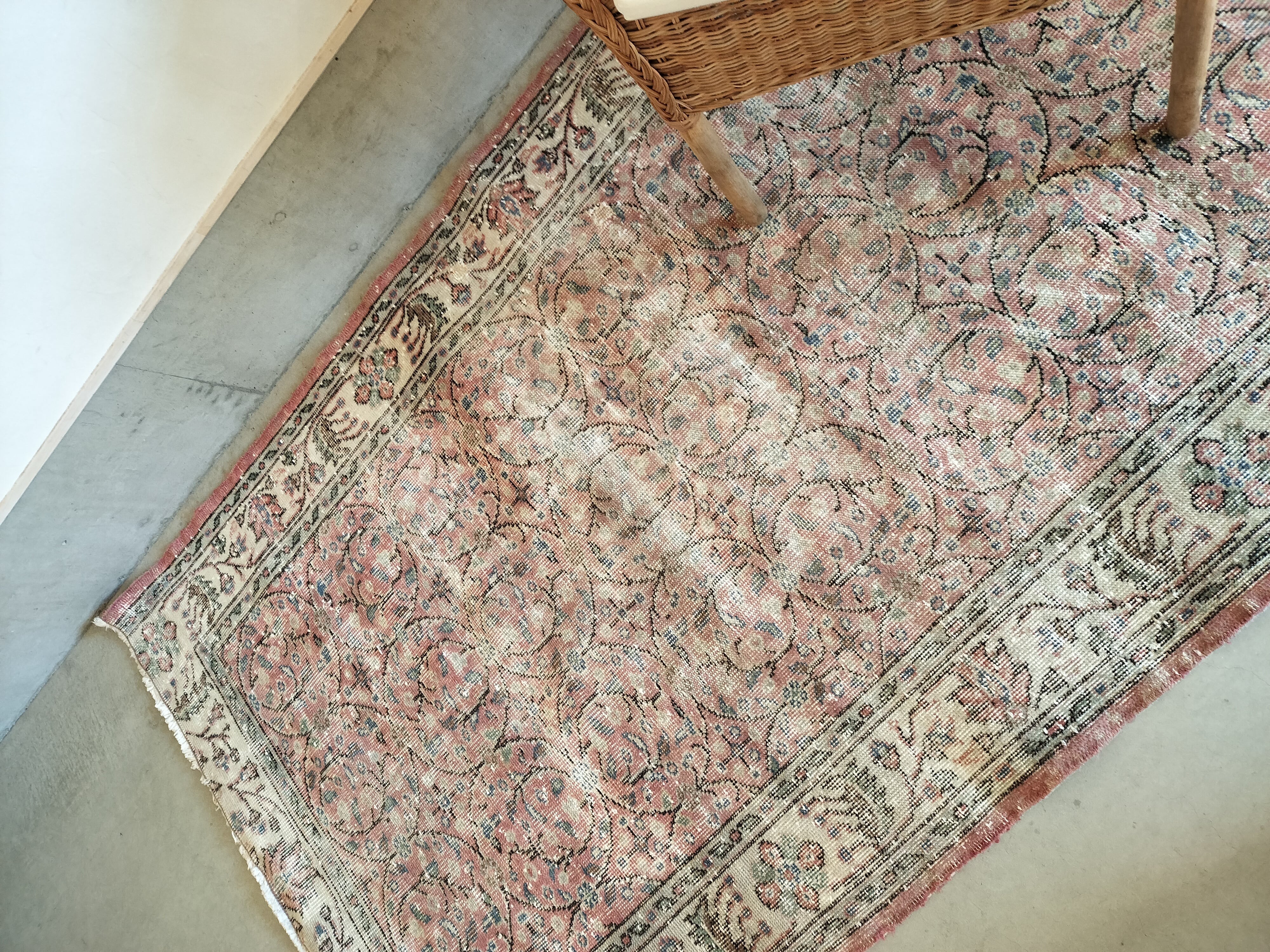 1980年代に織られたヴィンテージのトルコラグ。オーガニックウール、オーガニックコットン(裏糸)を使い、自然染料及び野菜染料で色づけされています。