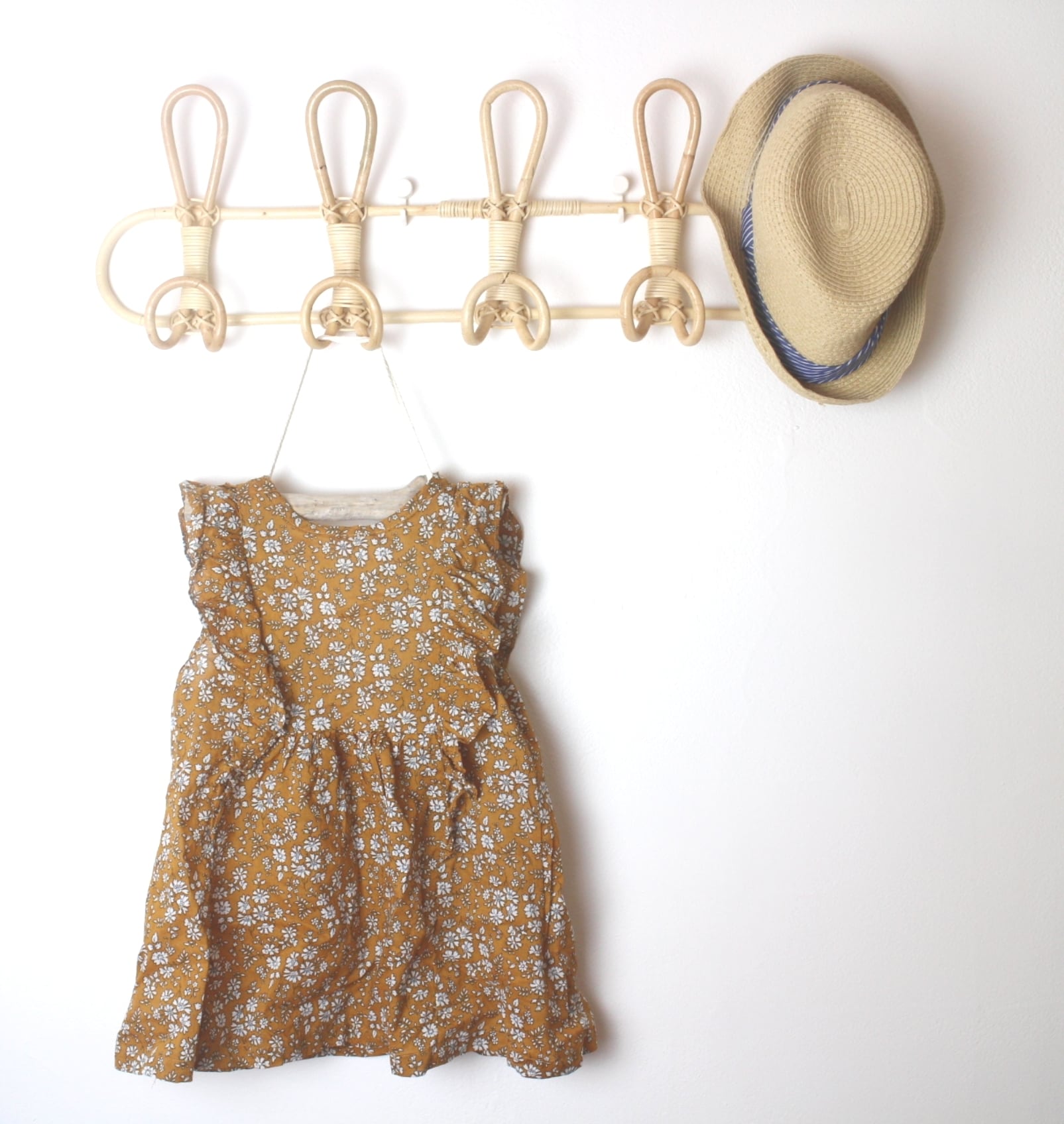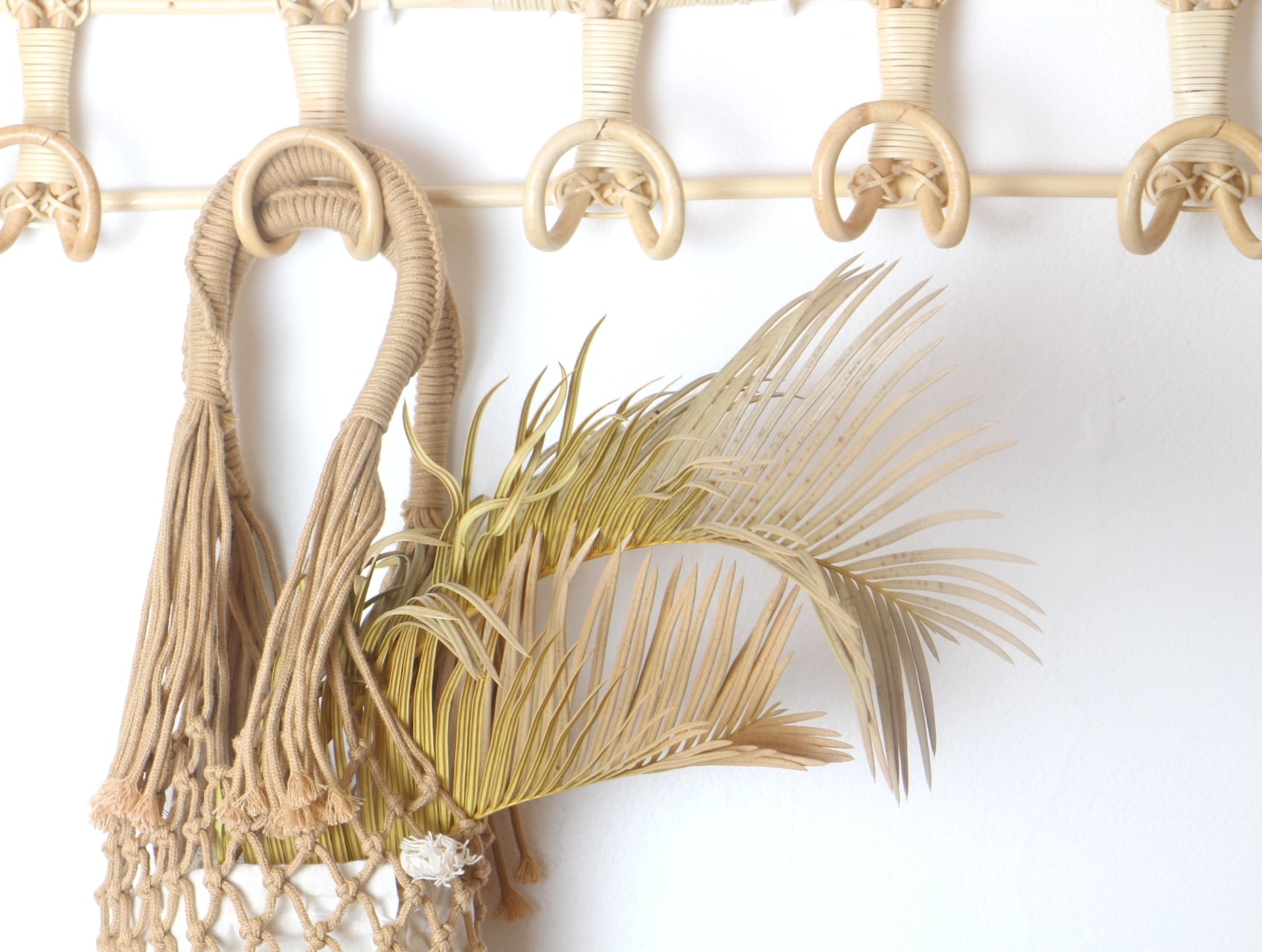 こちらに釘を打ち込んで留めていただくこともできますし、壁が石膏ボードで頑丈でない場合には、お写真のように石膏ボードに頑丈にとまるフックを壁にさして掛けることもできます。