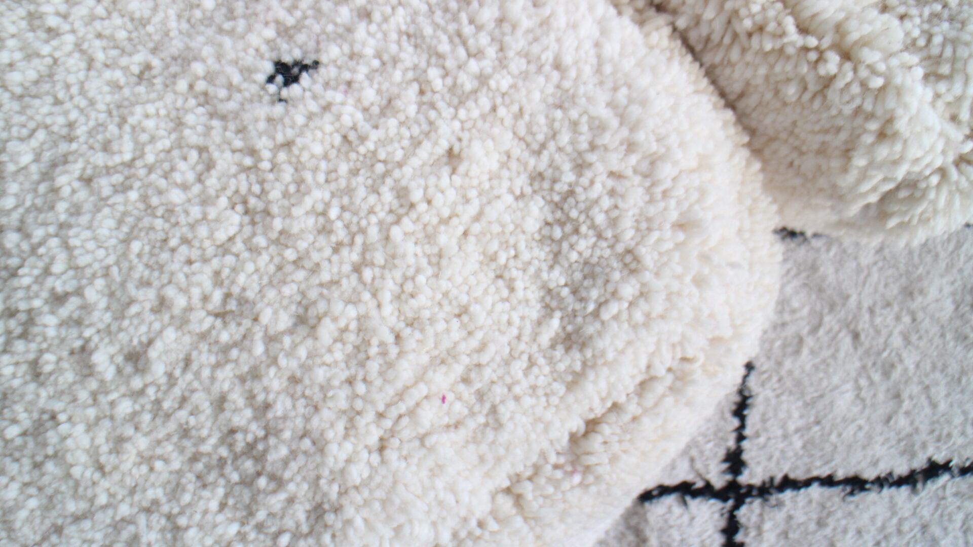 羊毛100%のベニワレンは、そのもこもこ感が非常に魅力的です。こちらのドットのベニワレンプフは、マラケシュのラグディーラーになんとか探していただいたもので、次の入荷の予定はありません。探していた方はお早めにご購入ください。