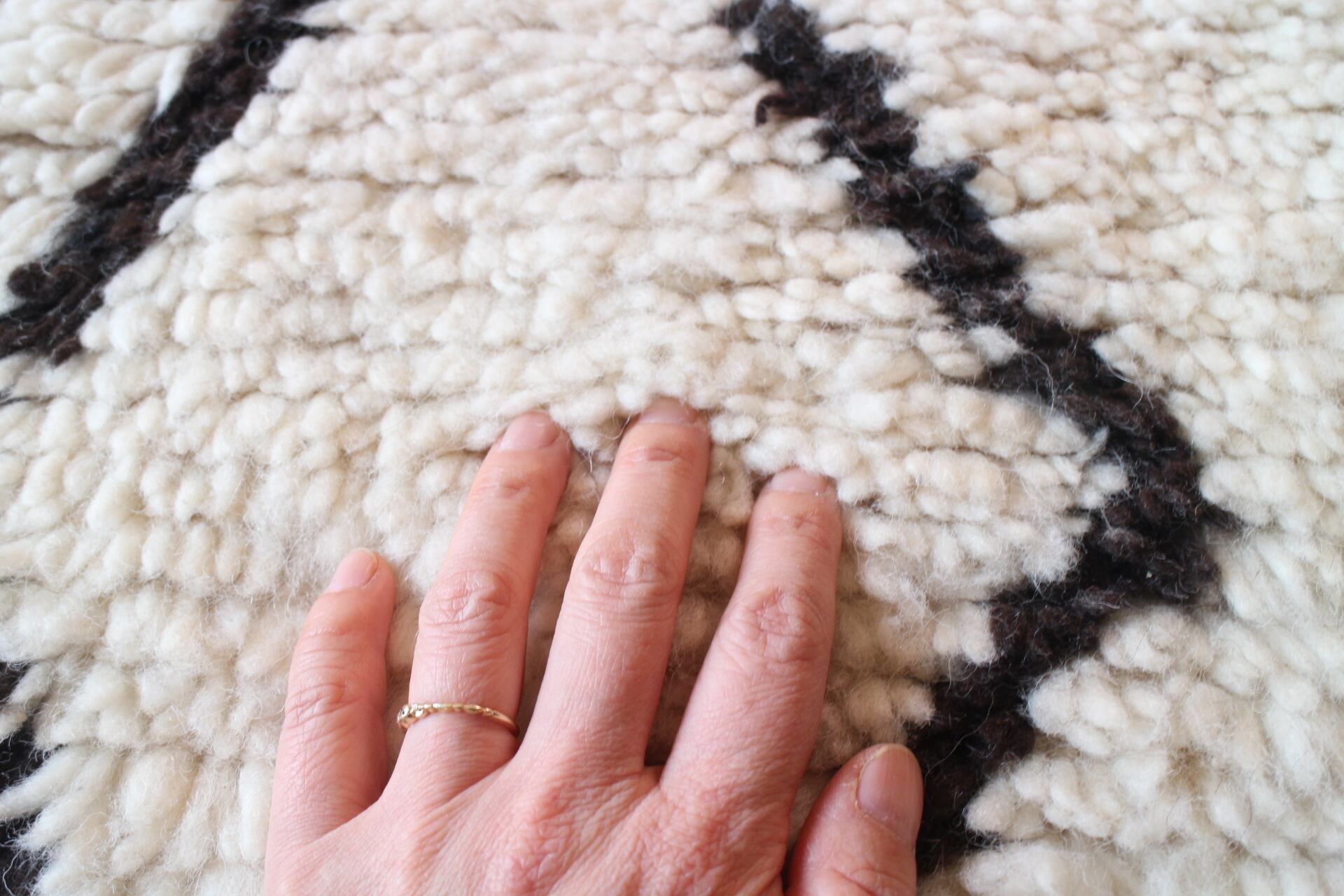 ベニワレンは、モロッコ北部に住むベルベル民族によって作られる手織りのラグです。高地アトラス山脈の良質なウールを紡ぎ、ベルベル民族の女性により一目一目織られています。