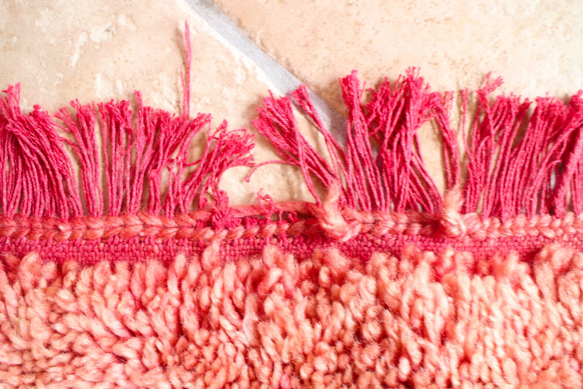 元々は濃赤であったラグが長い時を経て、ビンテージのウールにしか出せない薄い赤色に。