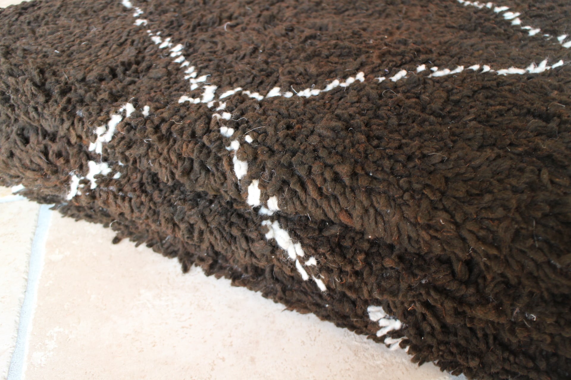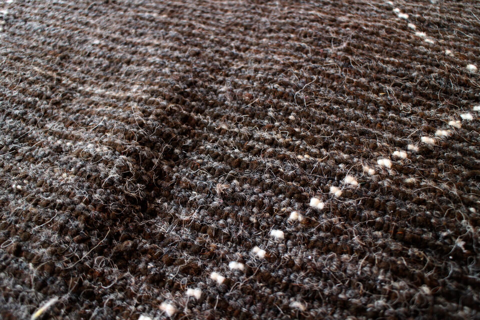こちらはベースの色味は限りなく黒に近い焦げ茶で、ビンテージ特有のつやがありしっとりとした毛並みがとてもかっこいいラグです。