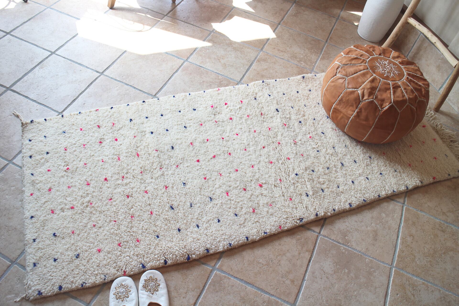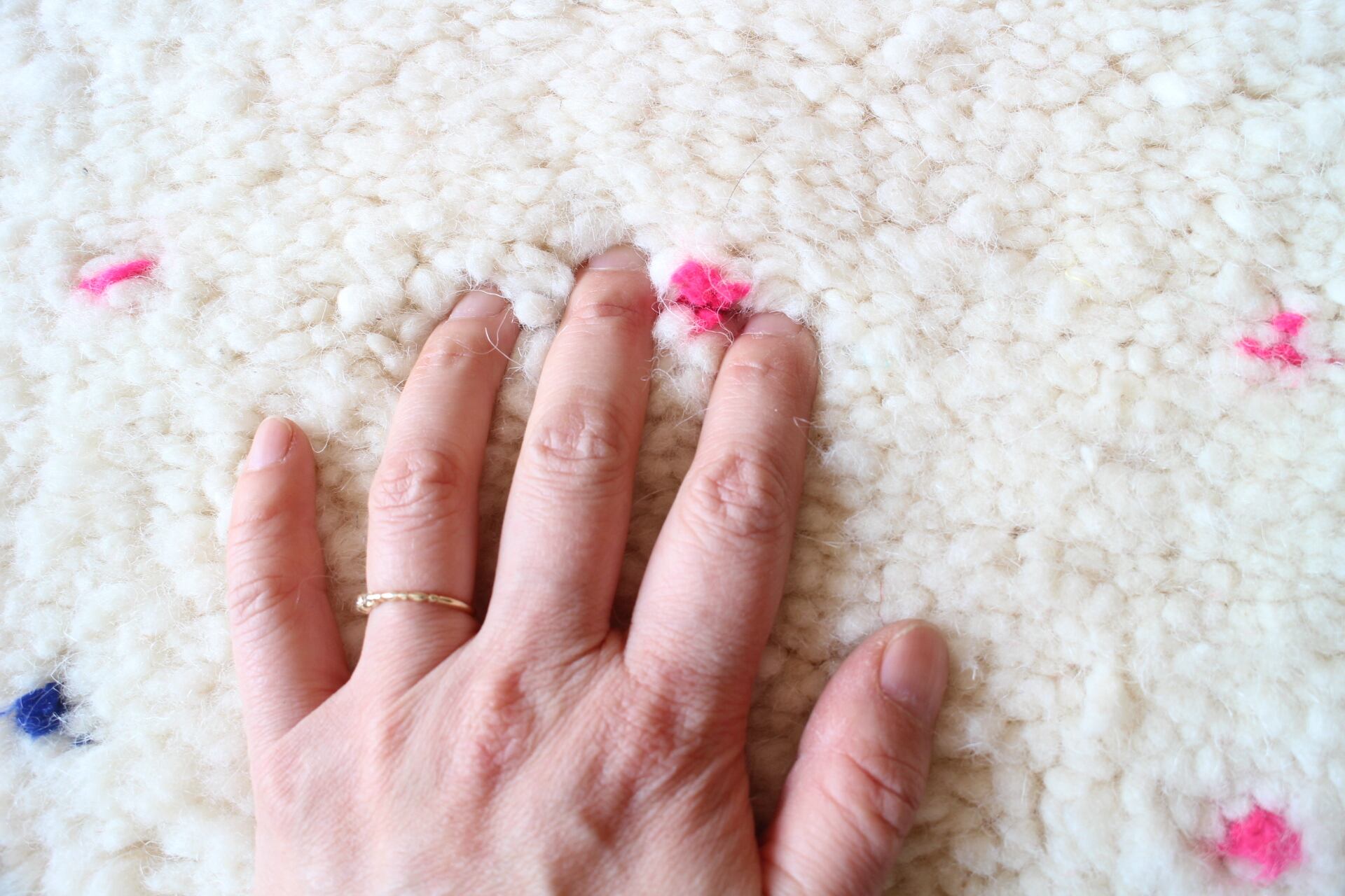 ベニワレンはモロッコ北部のベルベル民族によって手織りで作られたラグです。高地アトラス山脈の良質なウールを紡いで一目一目ベルベル民族の女性によって織られています。