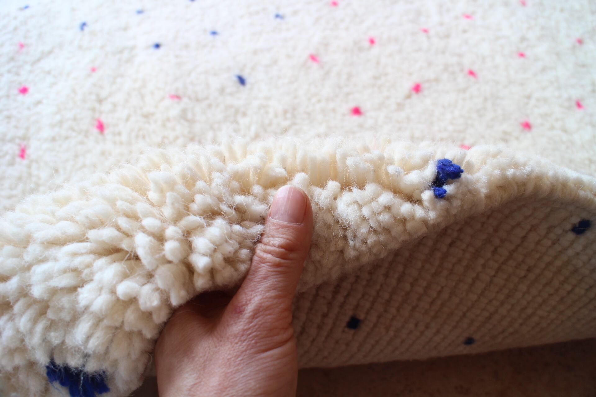 毛足は2cm程でしっかりと目が詰まり、弾力のあるもふもふの贅沢なラグです。