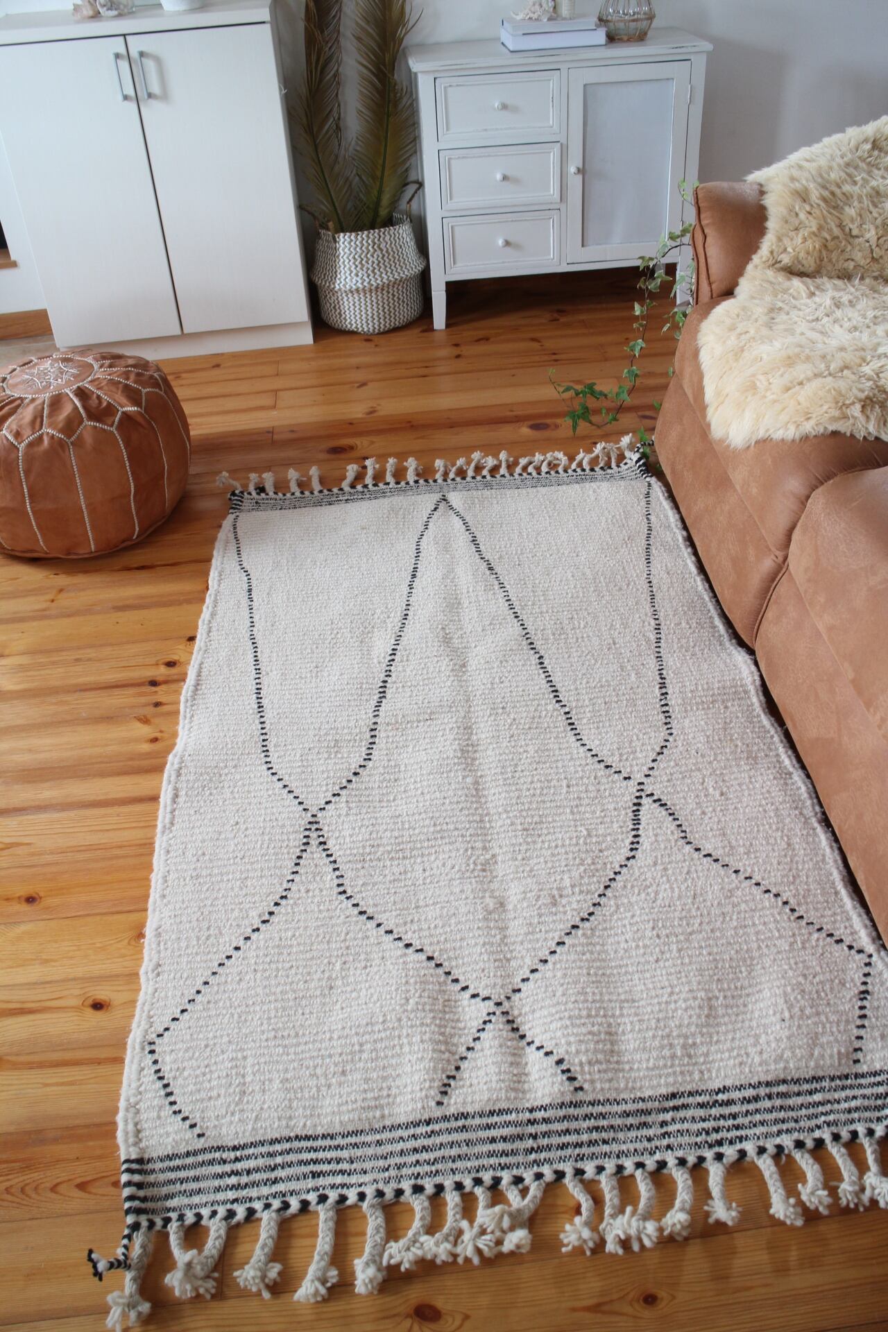 ベニワレンはモロッコ北部のベルベル民族によって手織りで作られたラグです。高地アトラス山脈の良質なウールを紡いで一目一目ベルベル民族の女性によって織られています。
