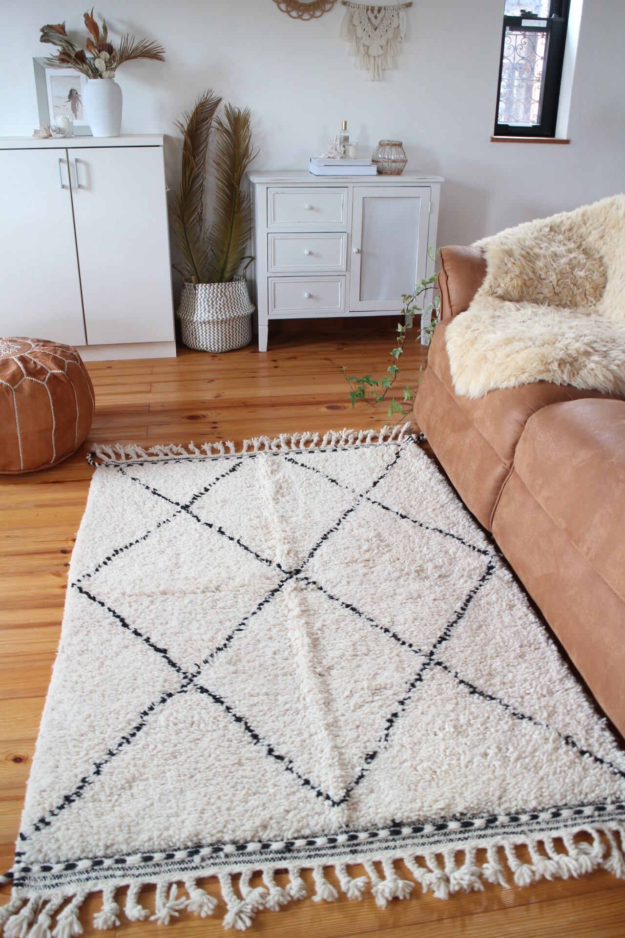 ベニワレンはモロッコ北部のベルベル民族によって手織りで作られたラグです。高地アトラス山脈の良質なウールを紡いで一目一目ベルベル民族の女性によって織られています。