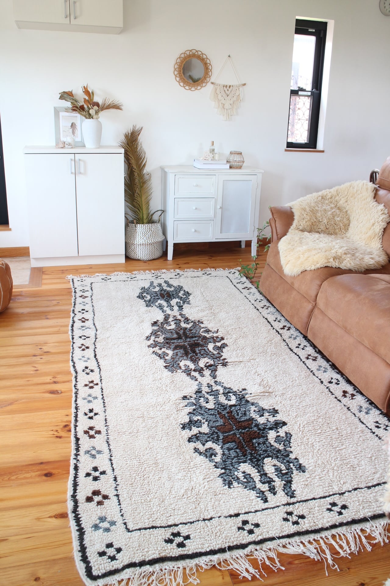 サイズもあるため迫力があり、男性的なお部屋にぴったりのラグ。Boho インテリアにも合いそうです。