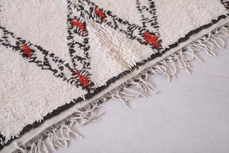 ただし、モロッコラグの特徴として羊毛に髪の毛のような黒い繊維が混じったり、固い草の繊維のようなものや、カラフルな小さなビニールが混じることがあります。