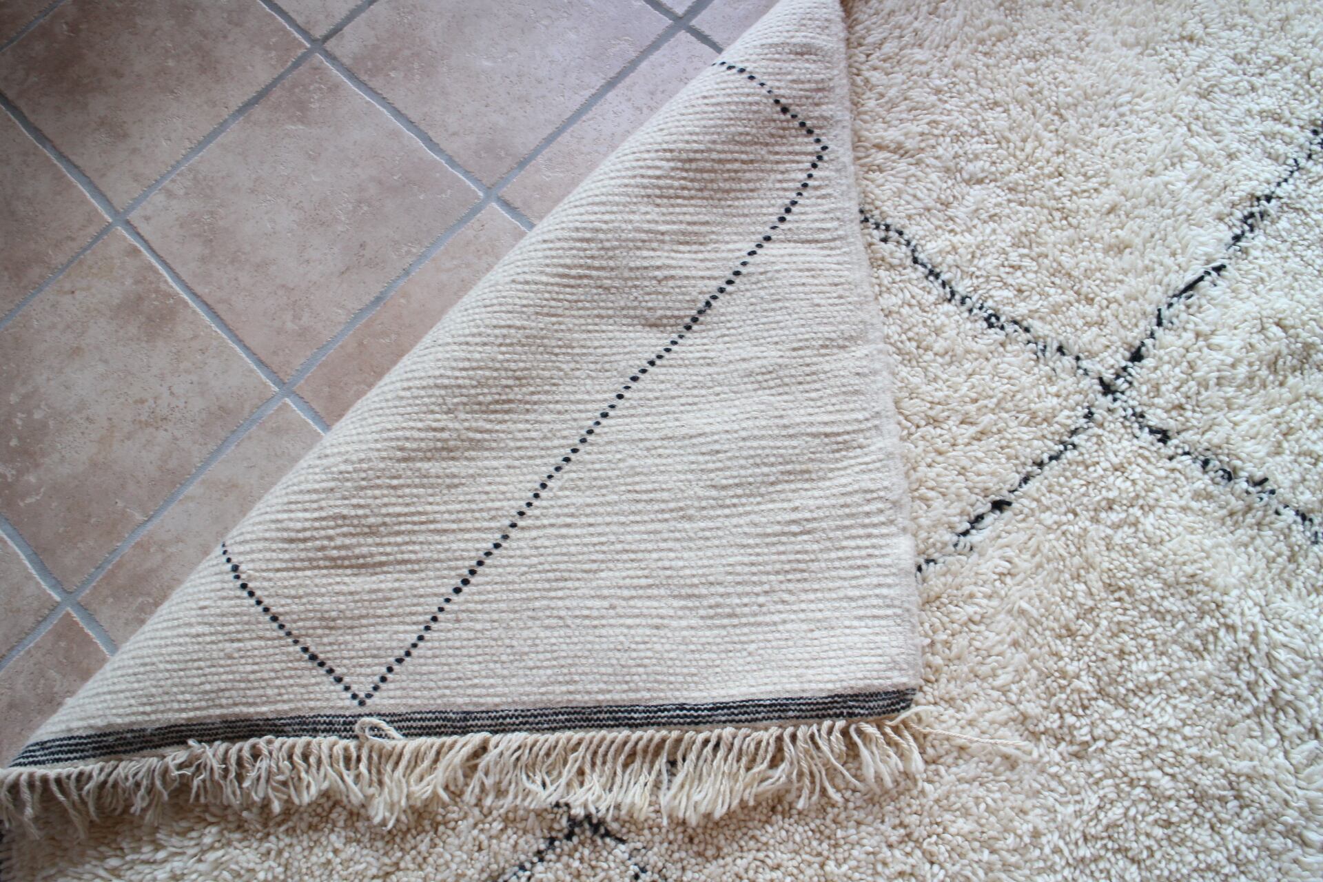 ベニワレンは、モロッコ北部に住むベルベル民族によって作られる手織りのラグです。高地アトラス山脈の良質なウールを紡ぎ、ベルベル民族の女性により一目一目織られています。