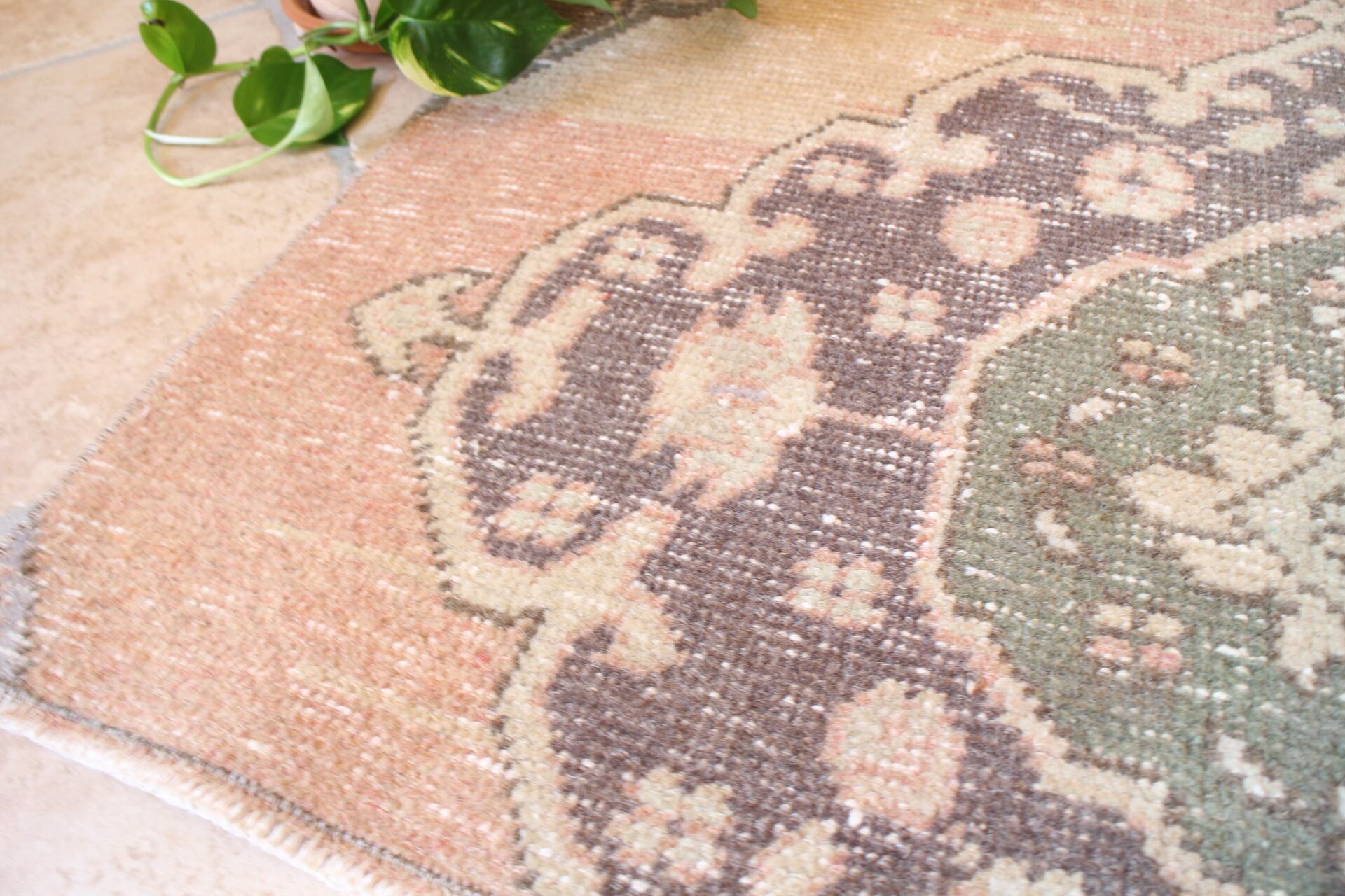 玄関マットサイズです。1から7まで同じラグから作成していただきましたが、ラグによって柄のでかたが違います。お好きな柄をお選びください。こちらはベース色にくすみピンクが多く入っています。