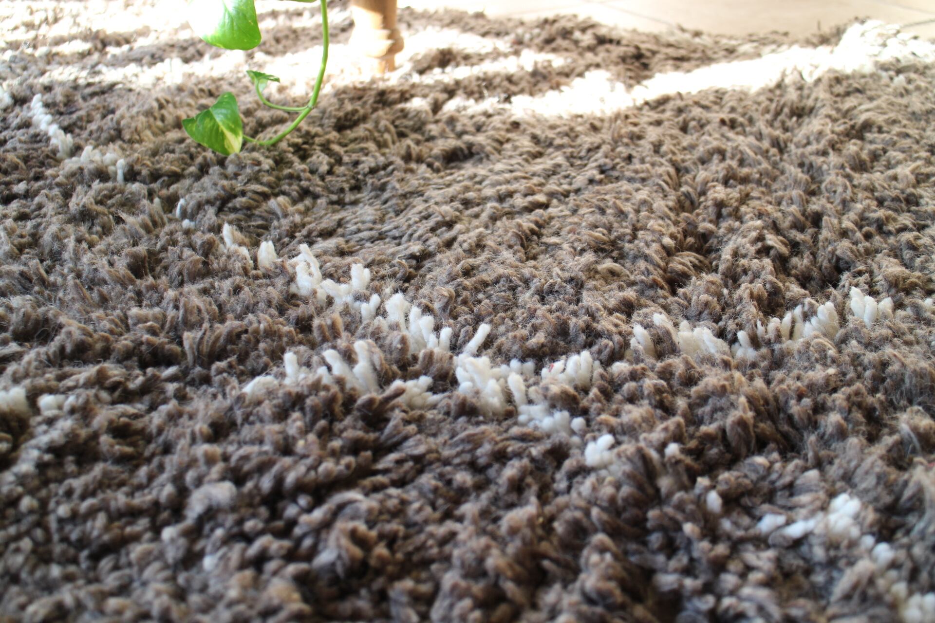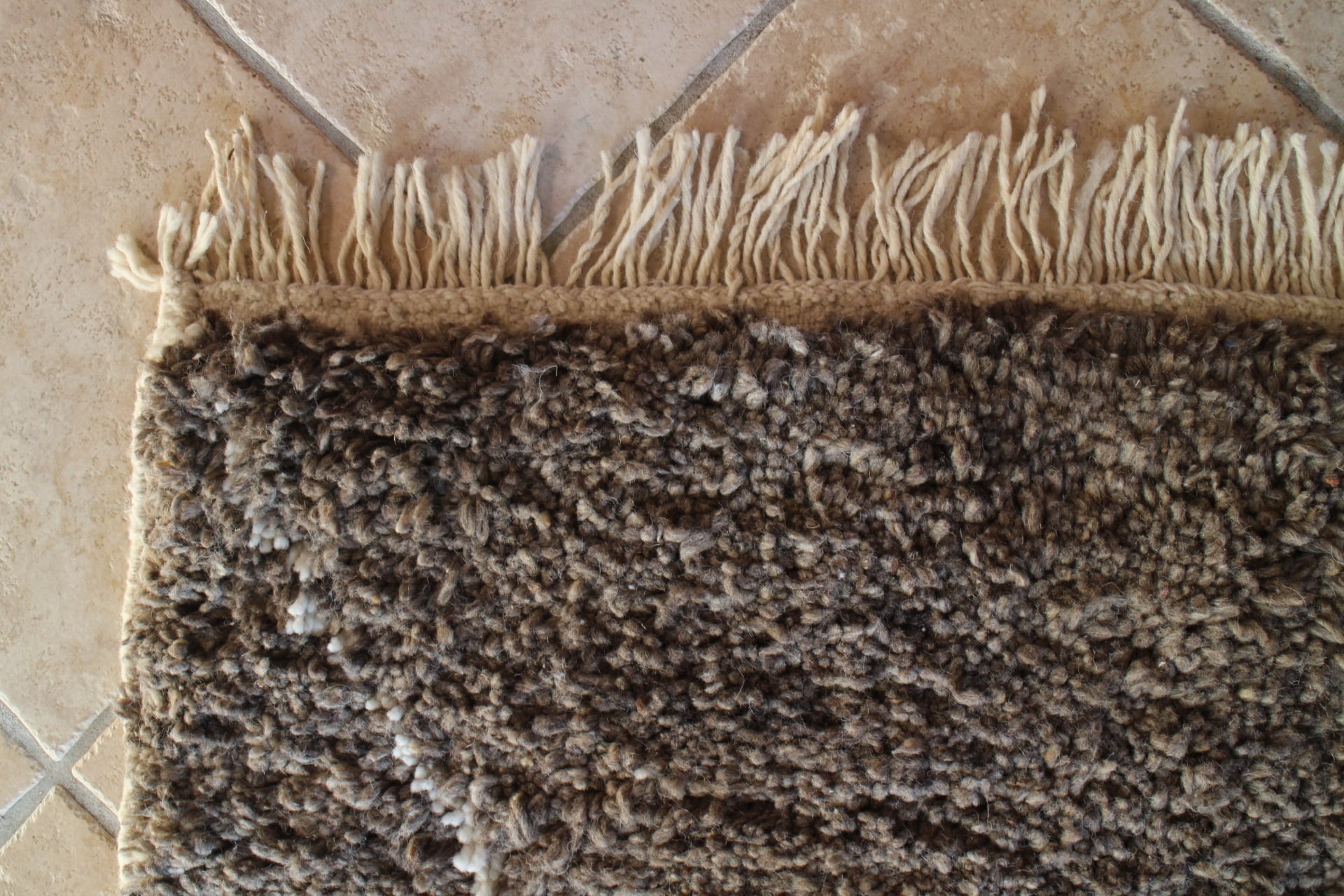 ただし、モロッコラグの特徴として羊毛に髪の毛のような黒い繊維が混じったり、固い草の繊維のようなものや、カラフルな小さなビニールが混じることがあります。