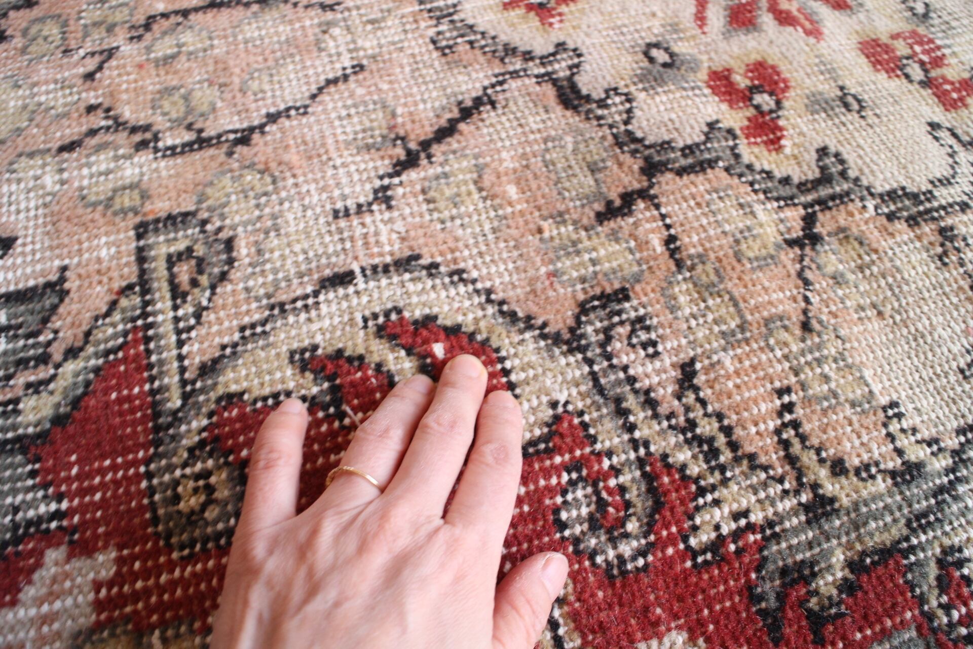 赤ベースで模様部分にはスモーキーピンクが入るエリアラグ。敷くとパッと場が明るくなるような可愛らしさがあります。