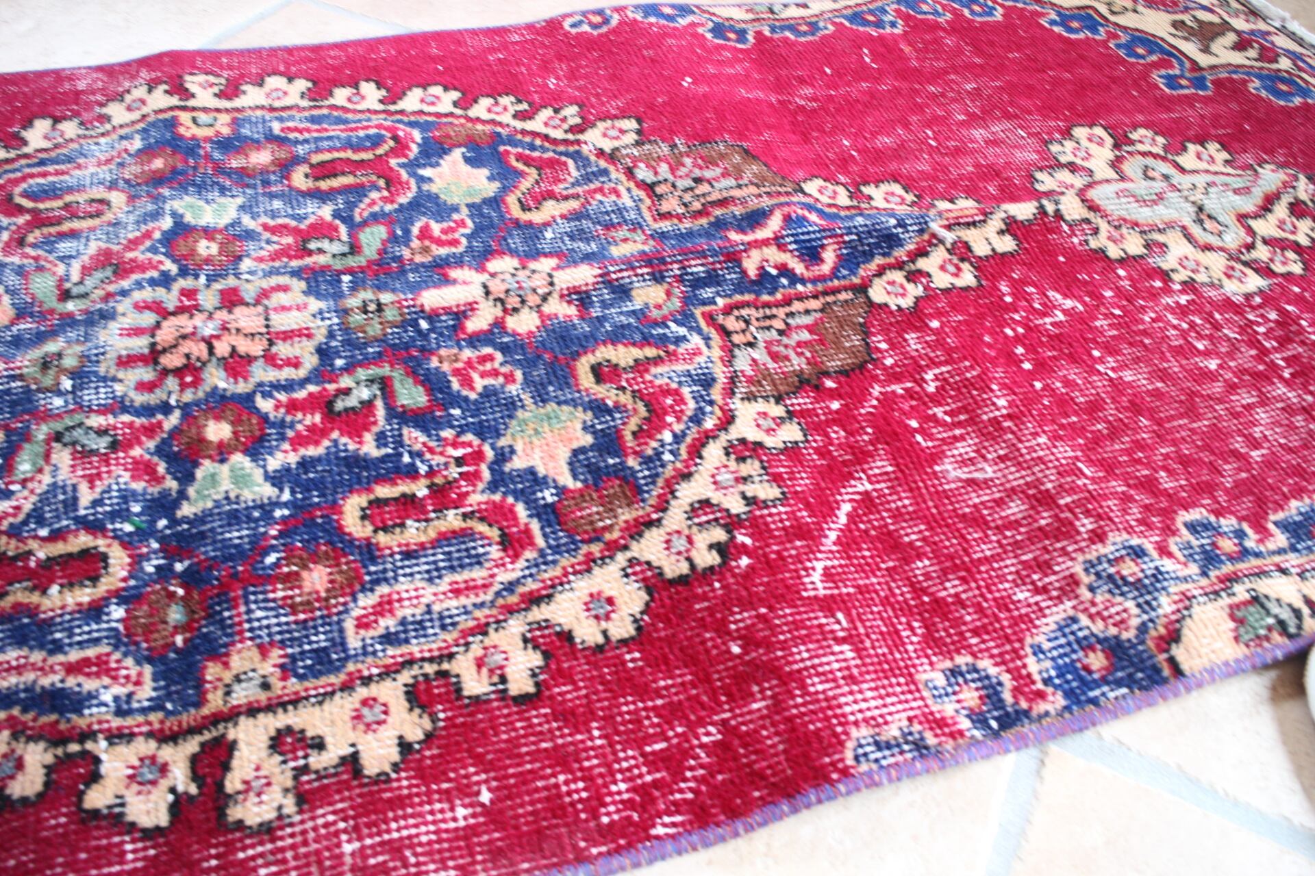 ワインレッドがシックな印象のメダリオンラグ。ブルーで入るメダリオンや四隅の柄がかっこ良い印象です。