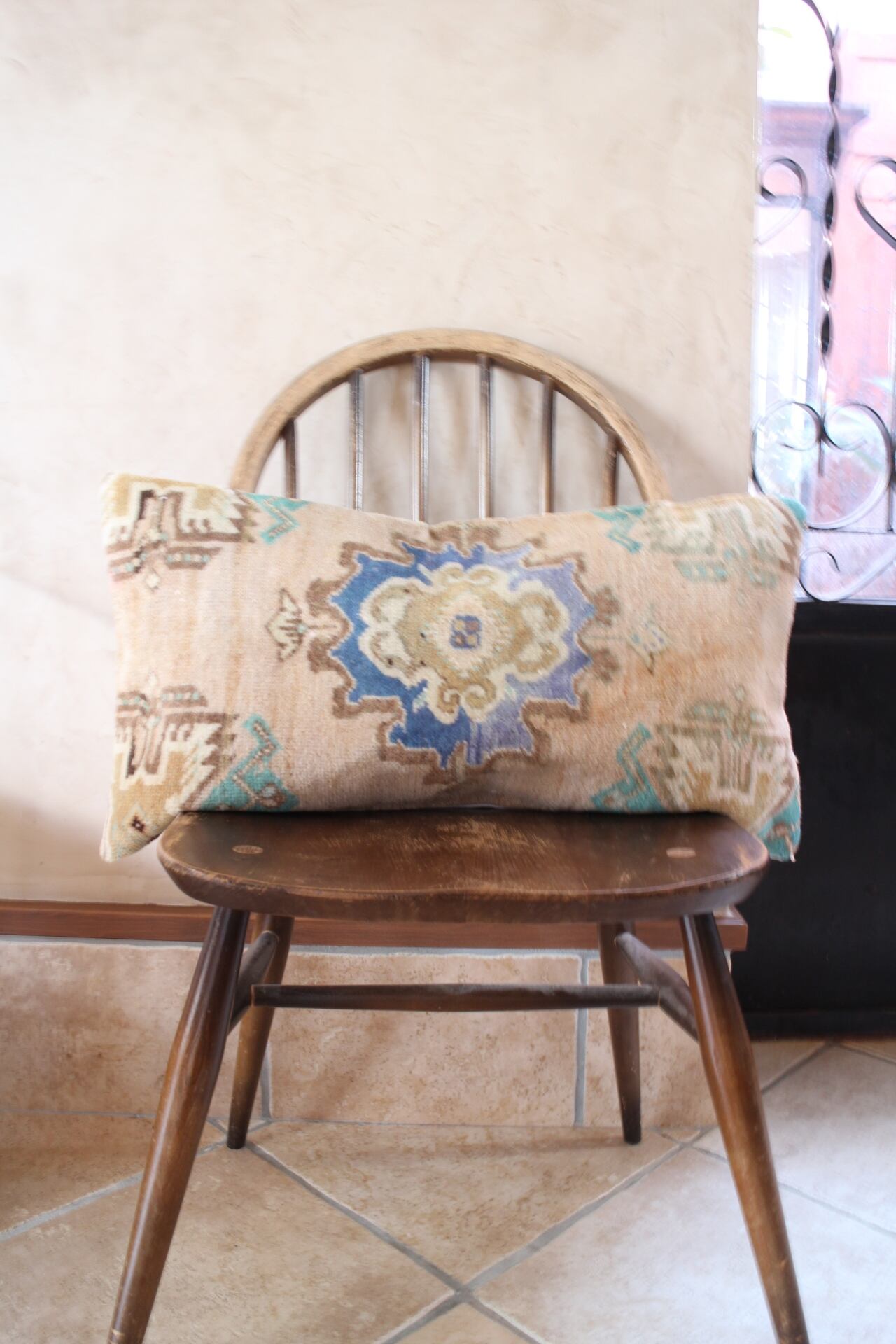 ヴィンテージのトルコラグで作られたクッションカバー。