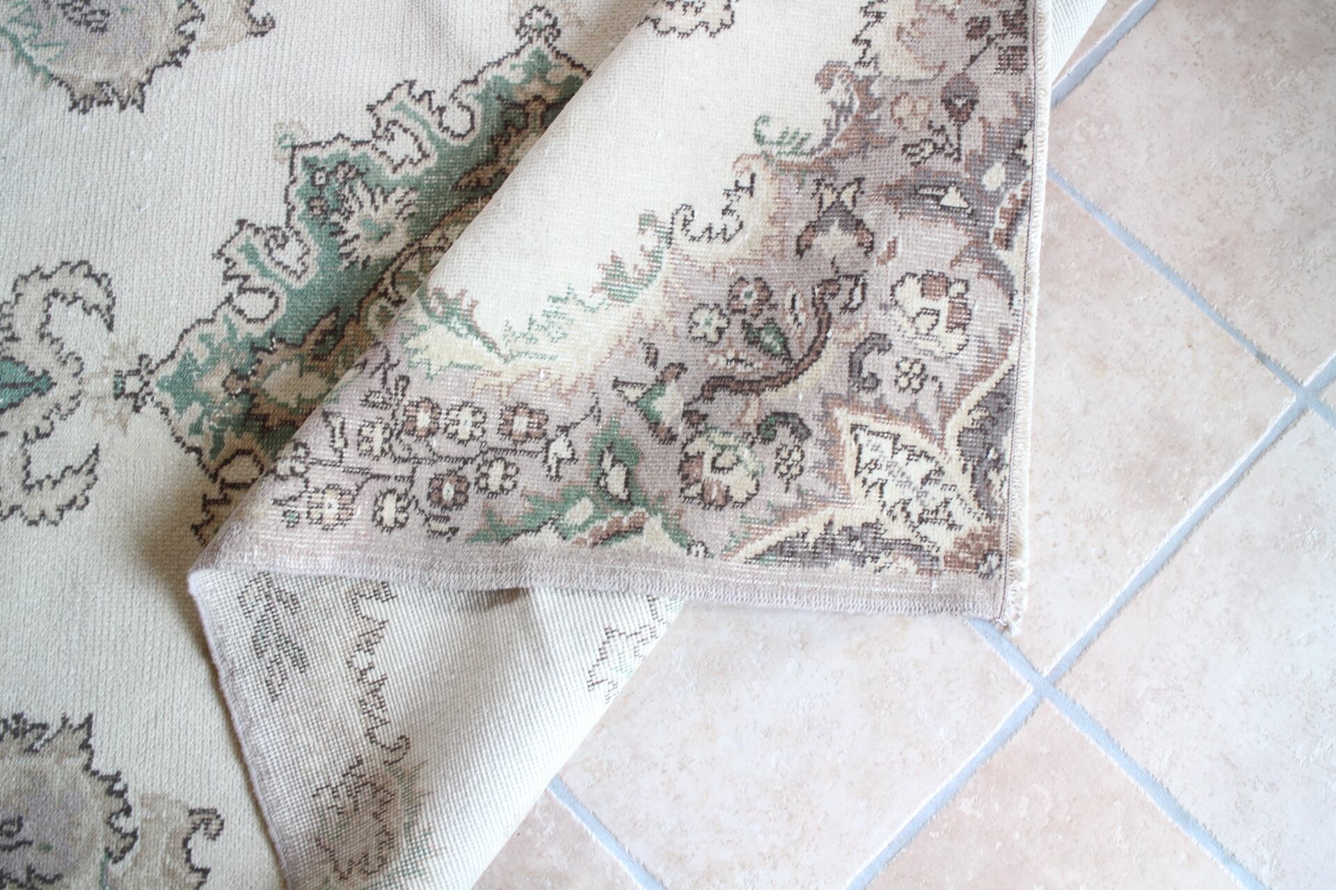 ベージュをベースとして、グリーンとグレージュが使われたシックで上品な印象のラグ。落ち着いた色合いはどんなインテリアも素敵に格上げしてくれそうです。ホワイト系やグレー系のインテリア、北欧インテリアにも。