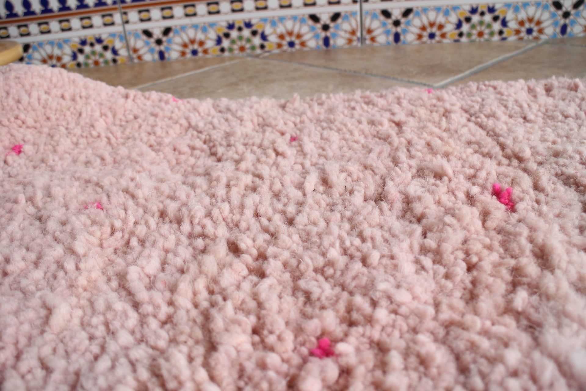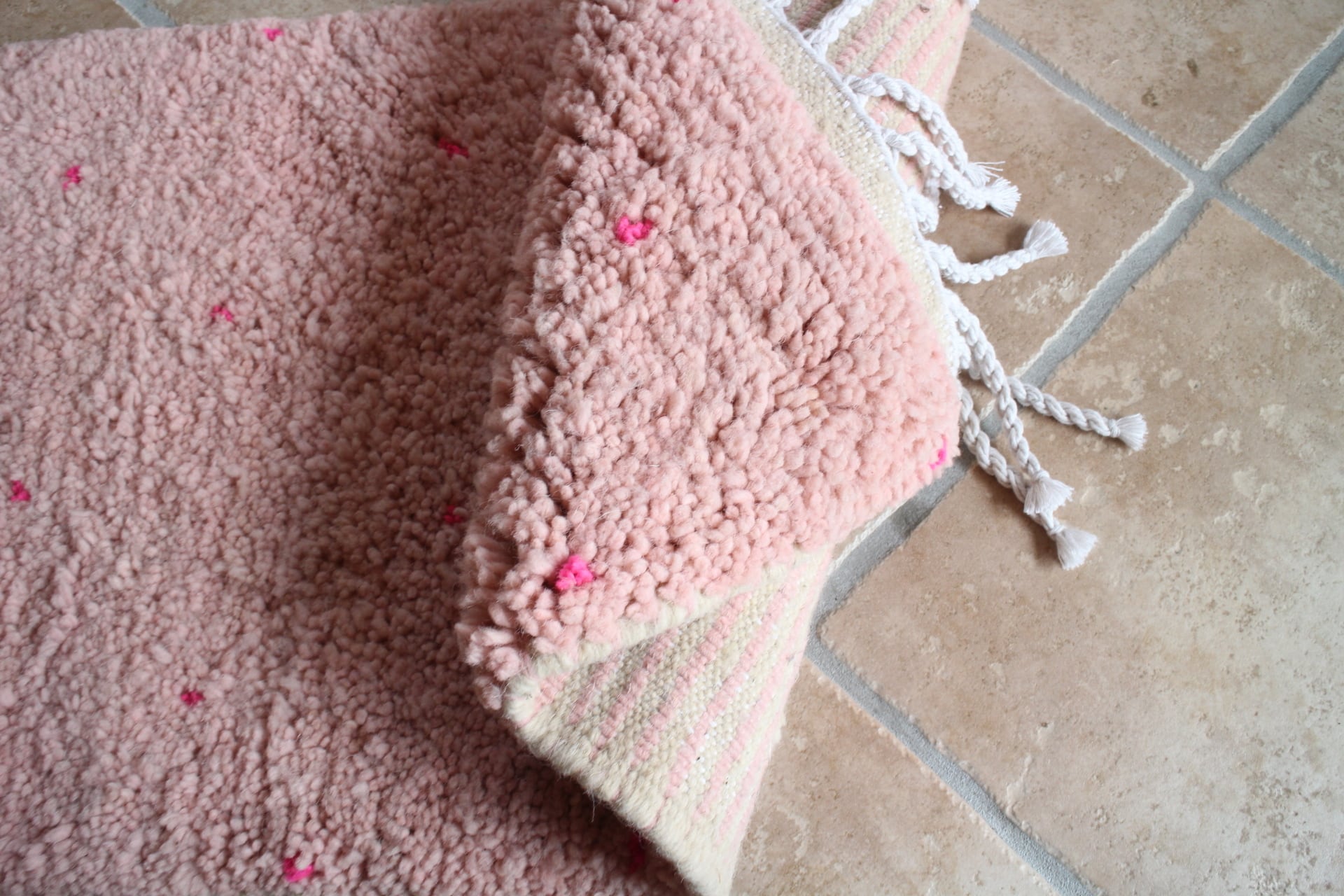 少しくすんだピーチピンクにネオンピンクのドットが入ったかわいさ満点のベニワレンラグ。
