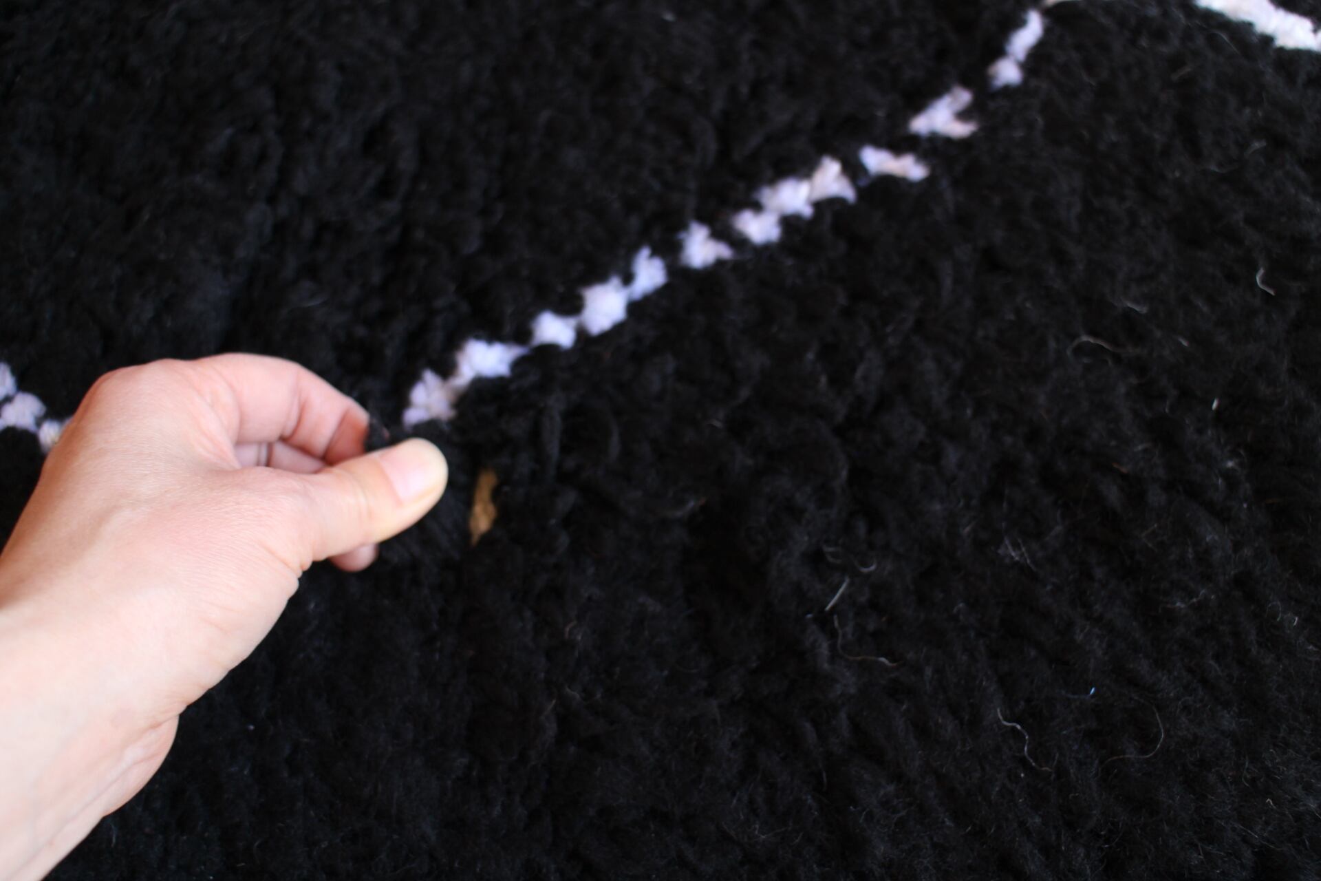 数の少ない、ブラックべースに白いダイヤ柄のベニワレンラグ。黒ベースはなかなか見つからず、色柄を指定して織ってもらった貴重な1枚です。艶のあるカッコいいラグでお部屋の主役になるラグです。