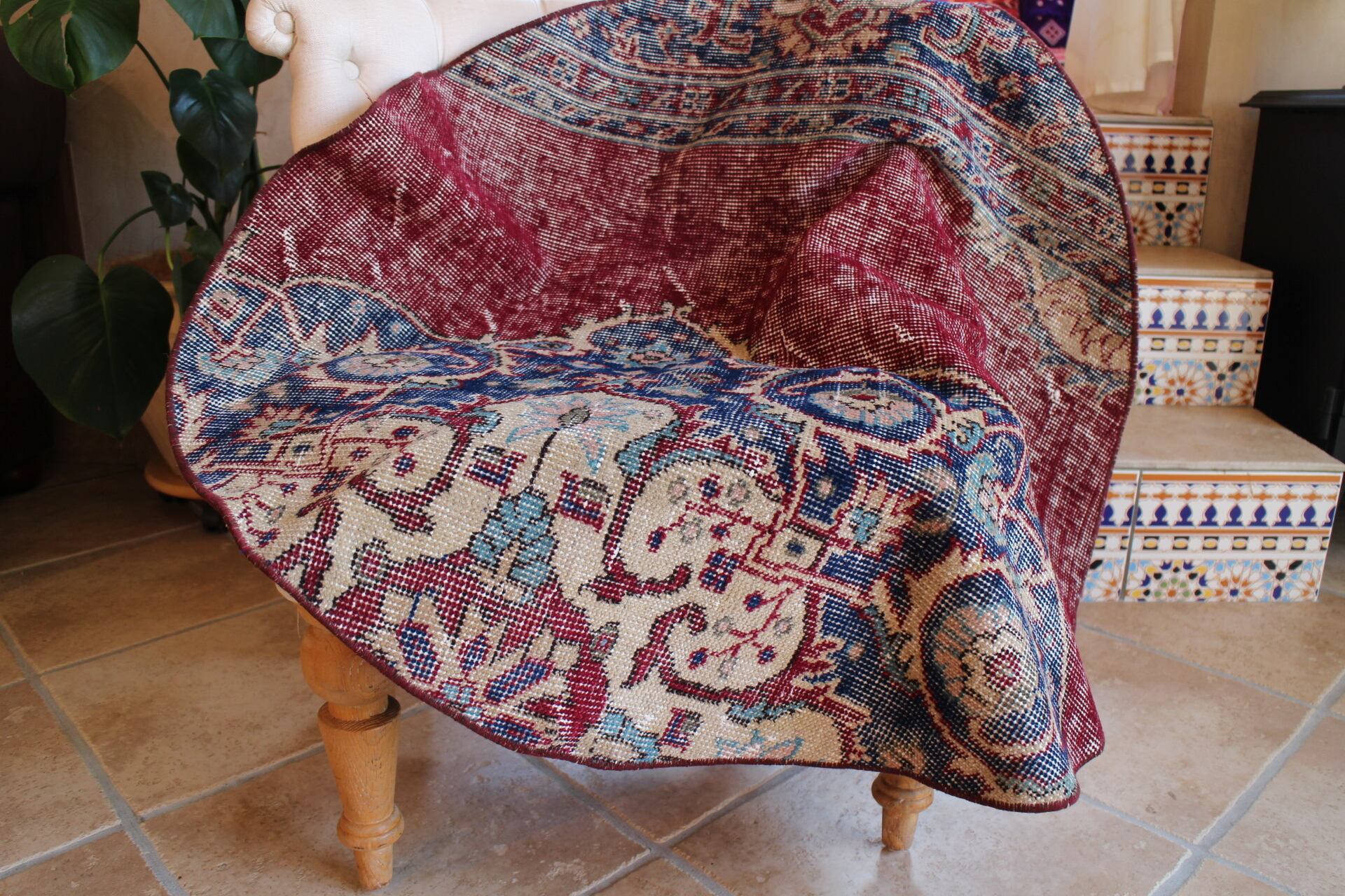 こちらはヴィンテージのラグの柄の素敵なところをサークルに切り取ったリサイクルラグです。