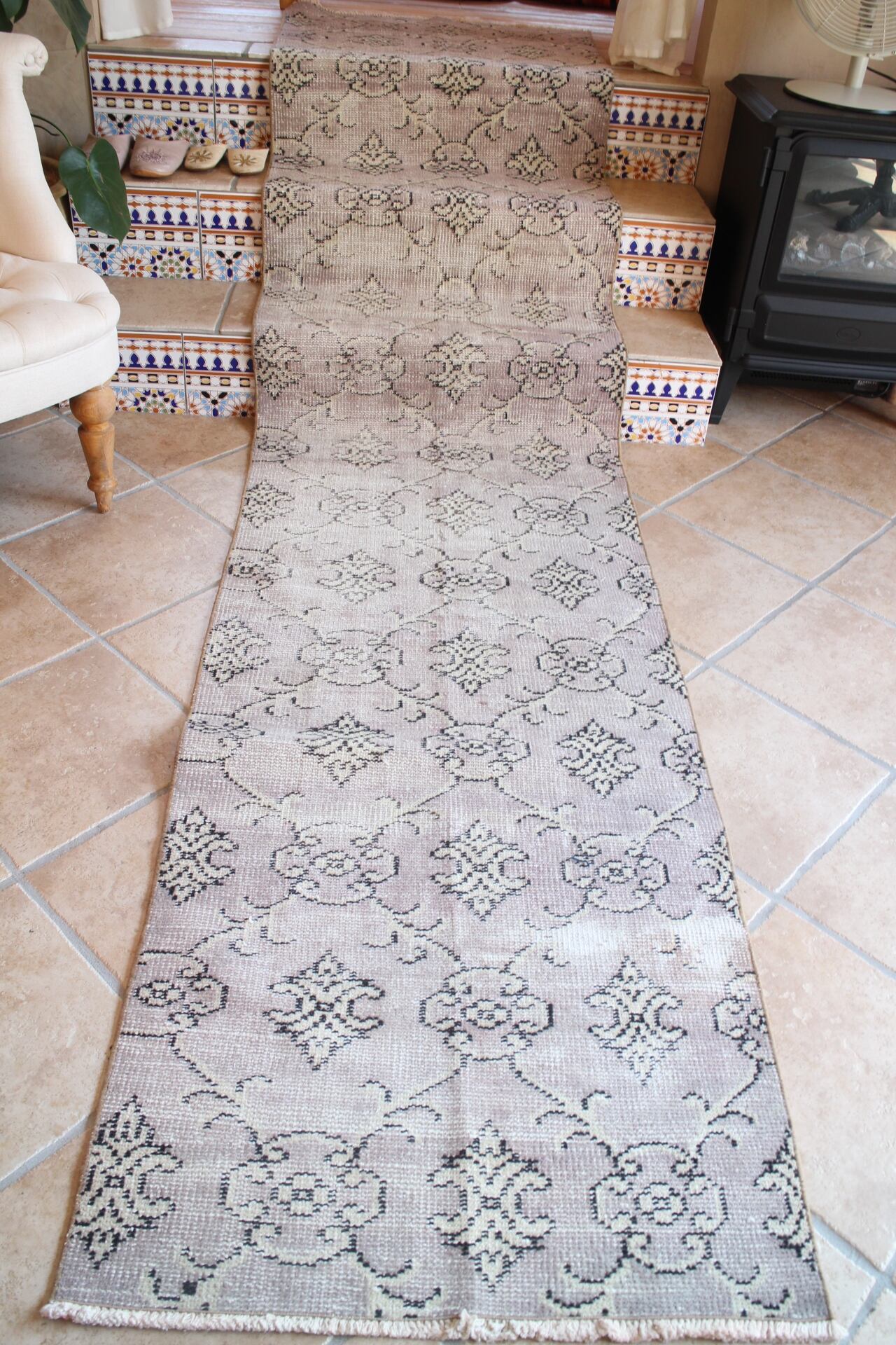 柄はグレーの紋章総柄でかっこ良い雰囲気です。広いお部屋や廊下にお使いいただけるサイズです。長いラグをお探しの方に。