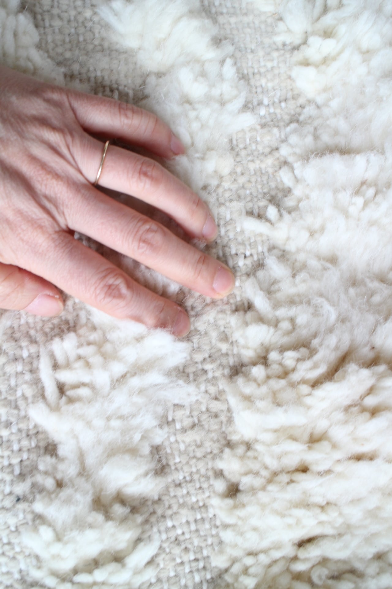 厚みのしっかりしたモフモフのベニワレン。贅沢な踏み心地です。毛足は2.5~3cmほど、厚みは2.5cmほどあります。一点もののラグです。