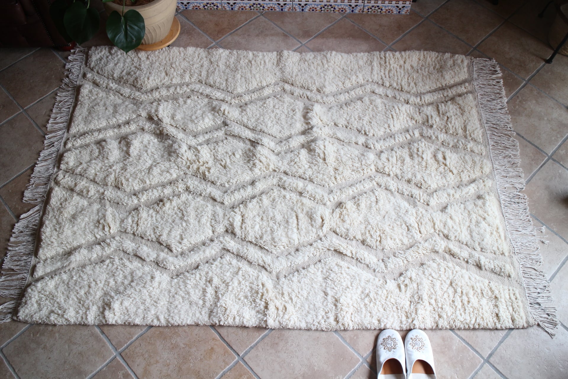 ベニワレンは、モロッコ北部に住むベルベル民族によって作られる手織りのラグです。高地アトラス山脈の良質なウールを紡ぎ、ベルベル民族の女性により一目一目織られています。