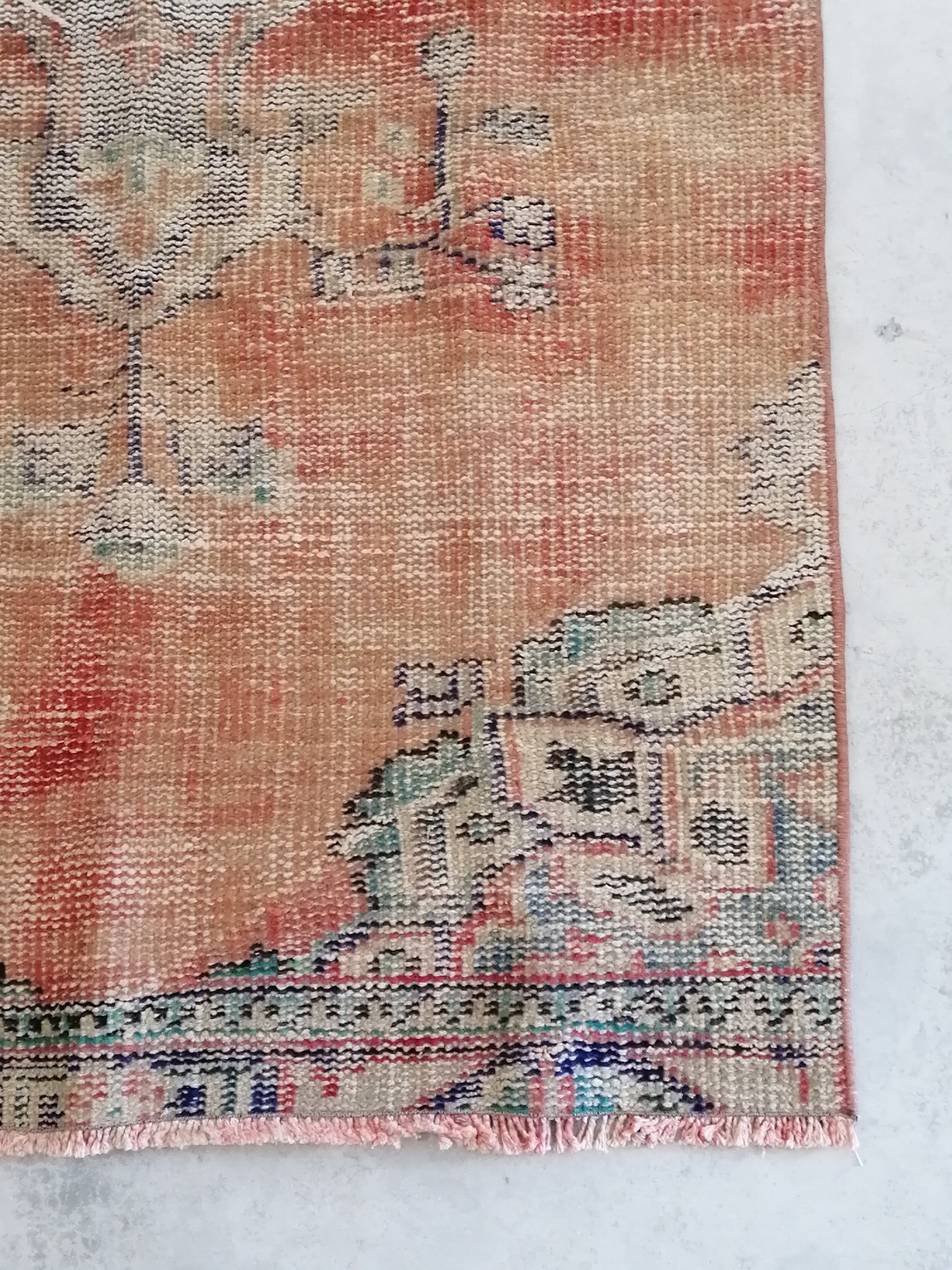 オレンジレッドがヴィンテージ感たっぷりなトルコラグ。シャビーなかすれがあり格好良い印象です。