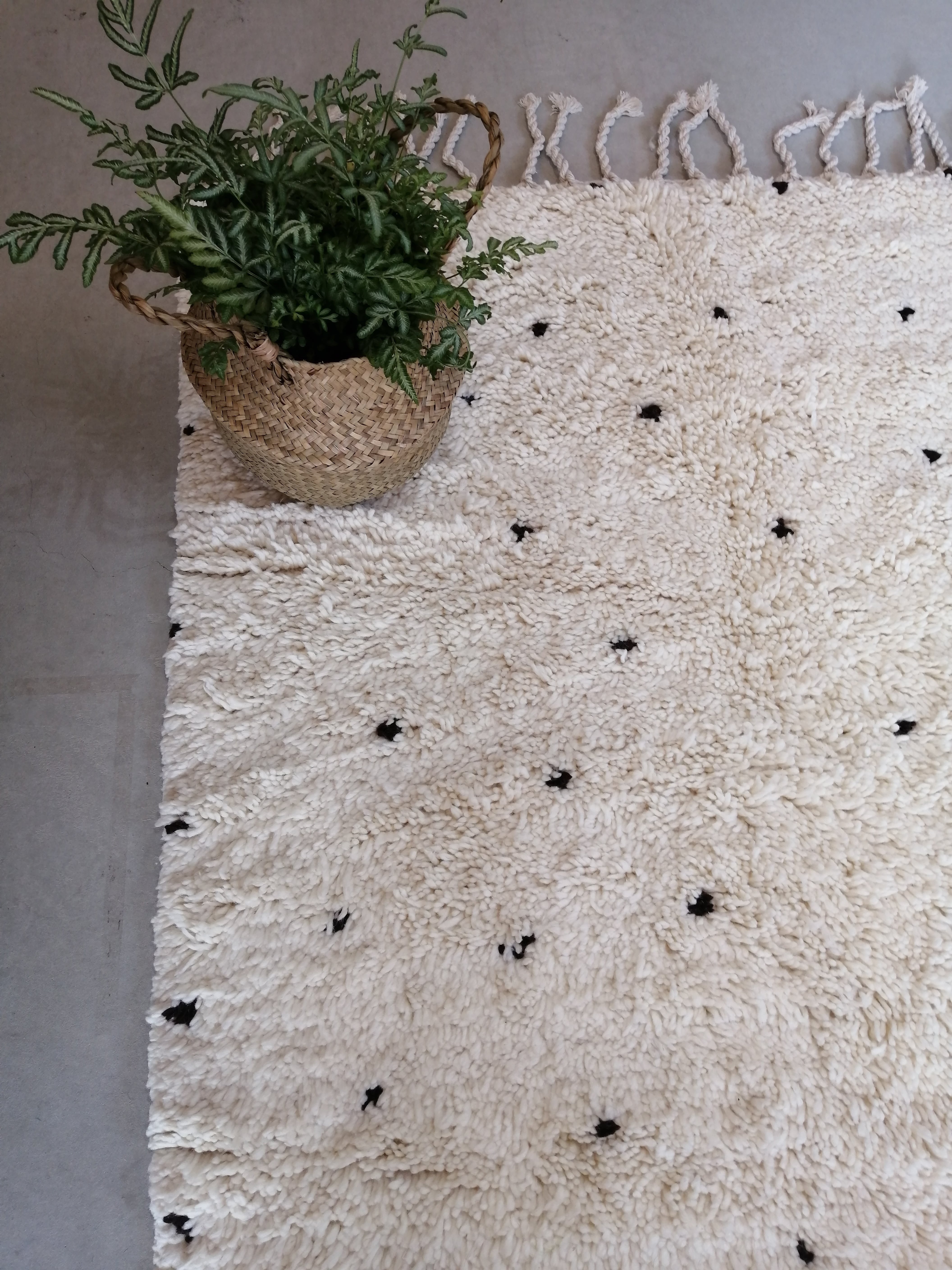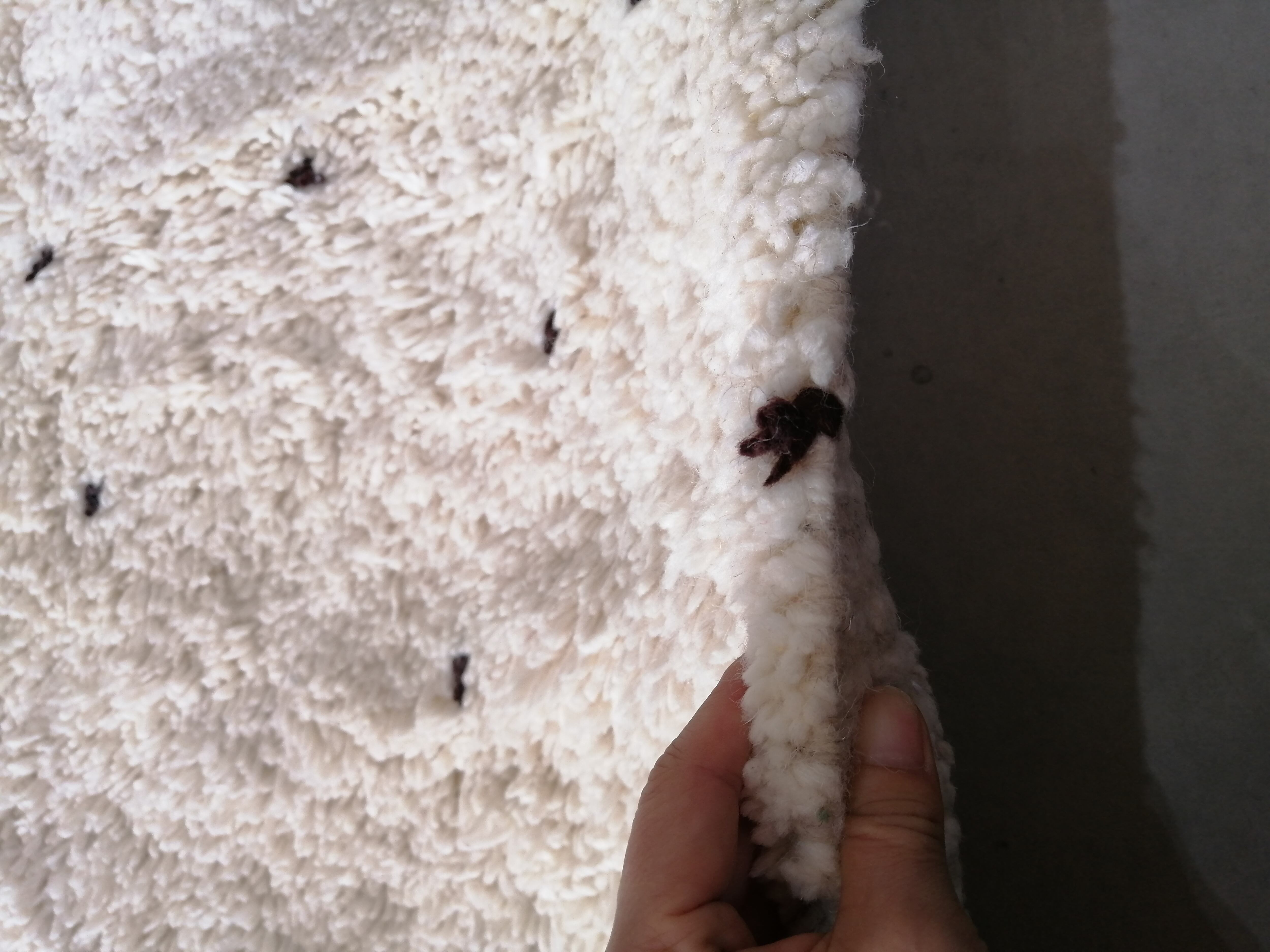 ただし、モロッコラグの特徴として羊毛に髪の毛のような黒い繊維が混じったり、固い草の繊維のようなものや、カラフルな小さなビニールが混じることがあります。