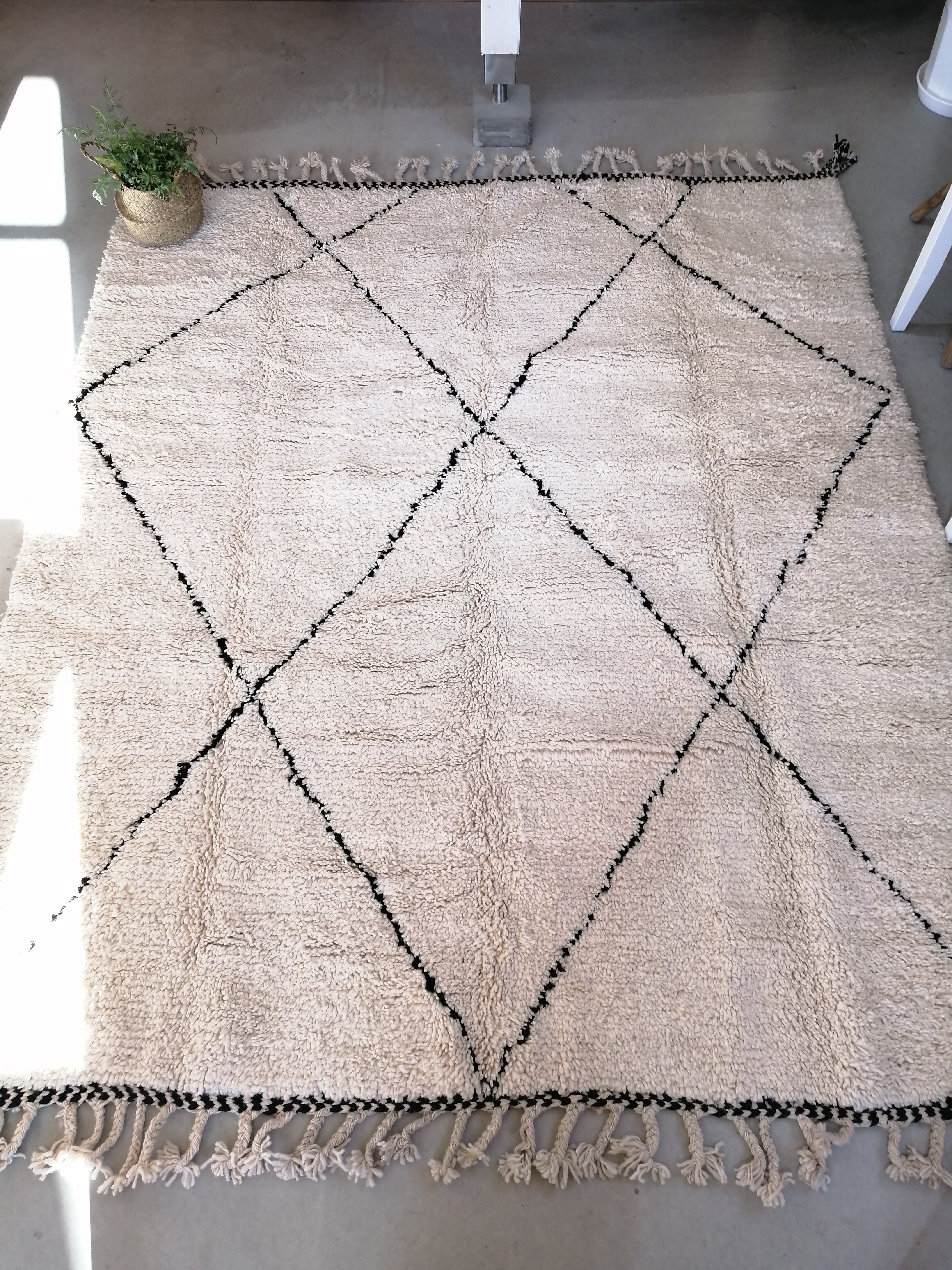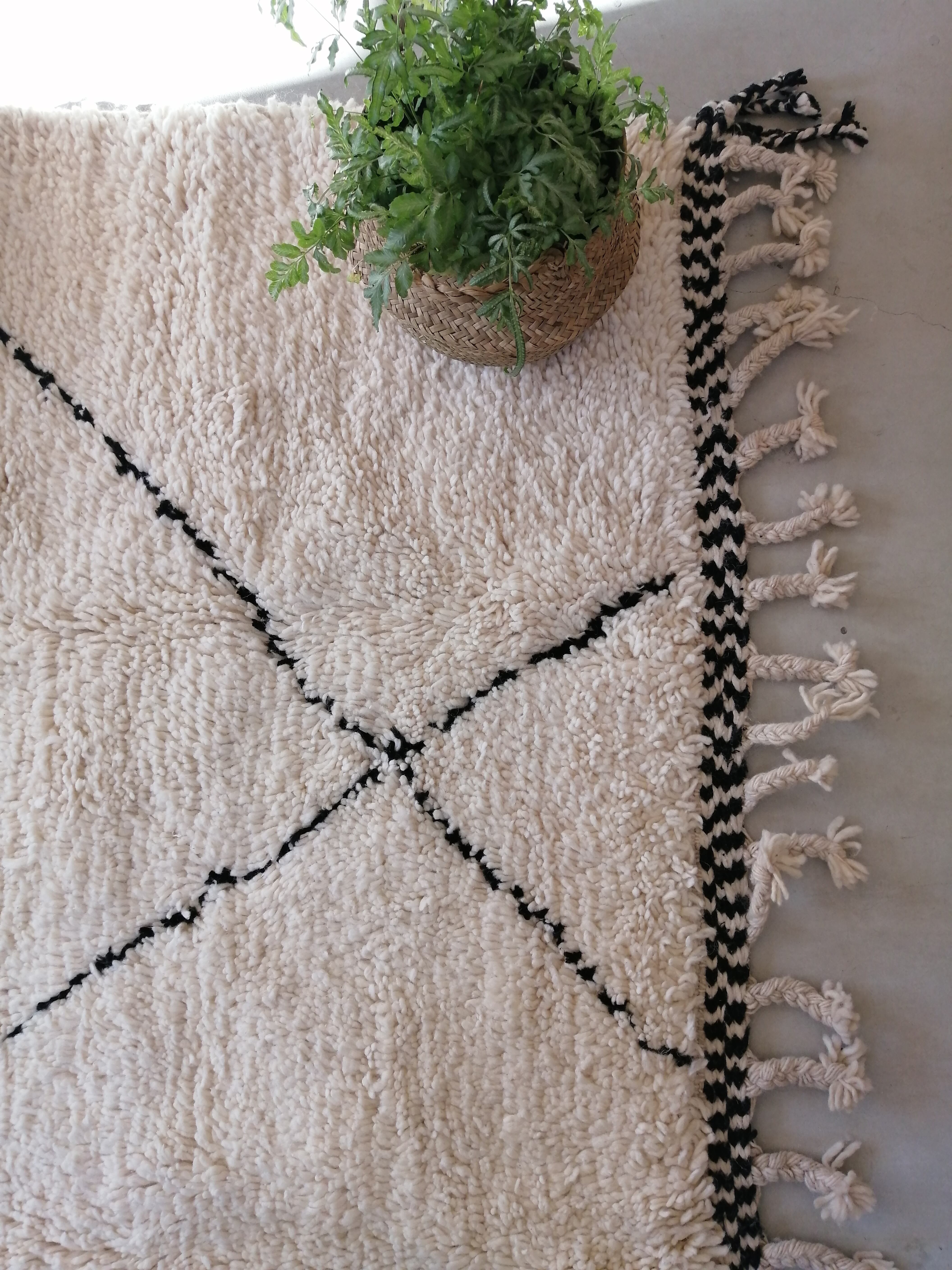 ベニワレンは、モロッコ北部に住むベルベル民族によって作られる手織りのラグです。高地アトラス山脈の良質なウールを紡ぎ、ベルベル民族の女性により一目一目織られています。