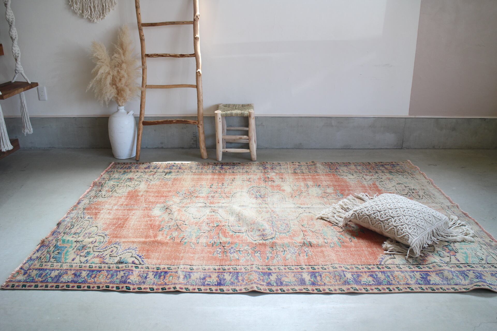 くったりとよく使い込まれたヴィンテージのトルコラグ。