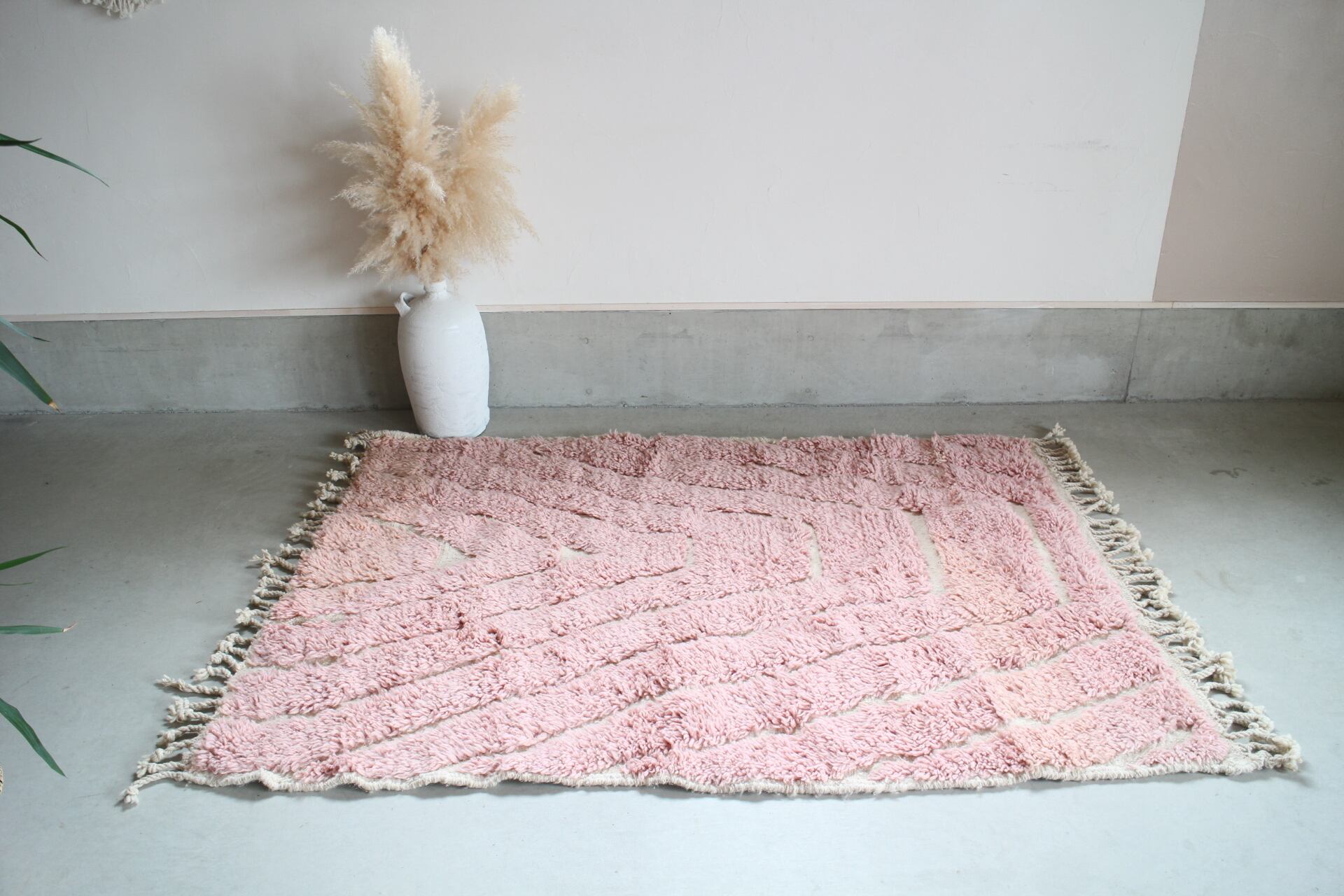 ベニワレンは、モロッコ北部に住むベルベル民族によって作られる手織りのラグです。高地アトラス山脈の良質なウールを紡ぎ、ベルベル民族の女性により一目一目織られています。
