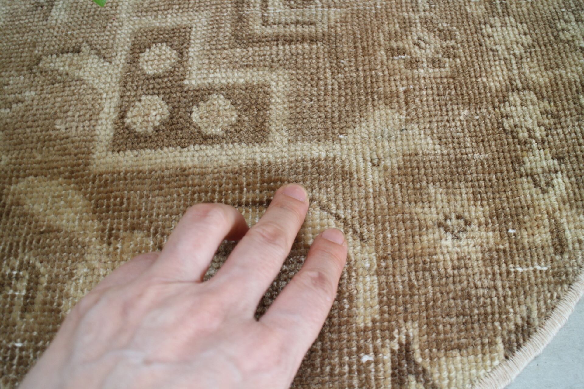 毛足は短くカットされ、季節を問わずにお使いいただけます。アンティークな雰囲気はインドアグリーンやアンティーク家具等とも相性が良さそうです。