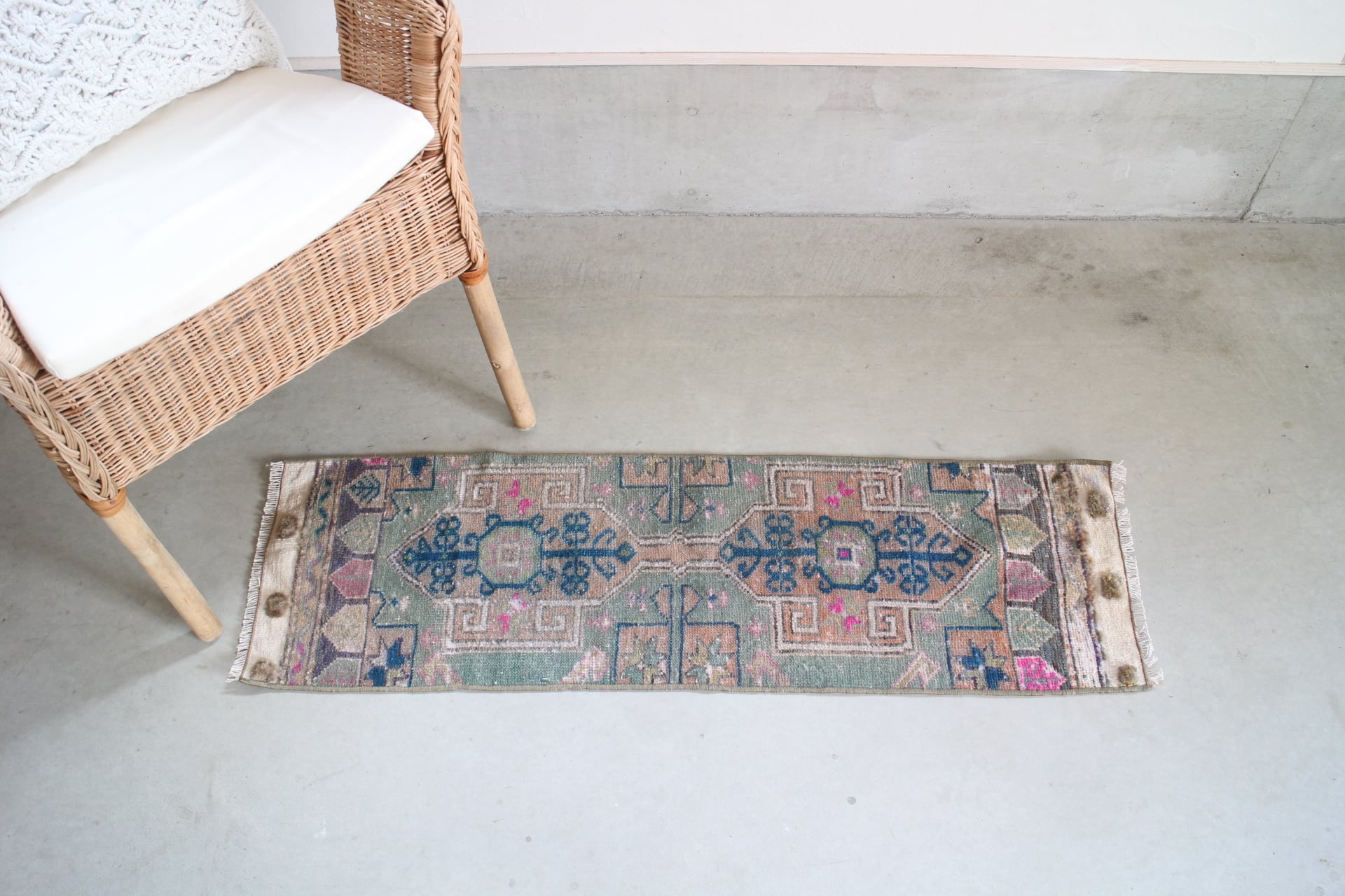 全体的には毛足は短くカットされ、季節を問わずにお使いいただけます。アンティークな雰囲気はインドアグリーンやアンティーク家具等とも相性が良さそうです。細長いサイズでコンソールテーブルの上などの敷物にも良いサイズです。