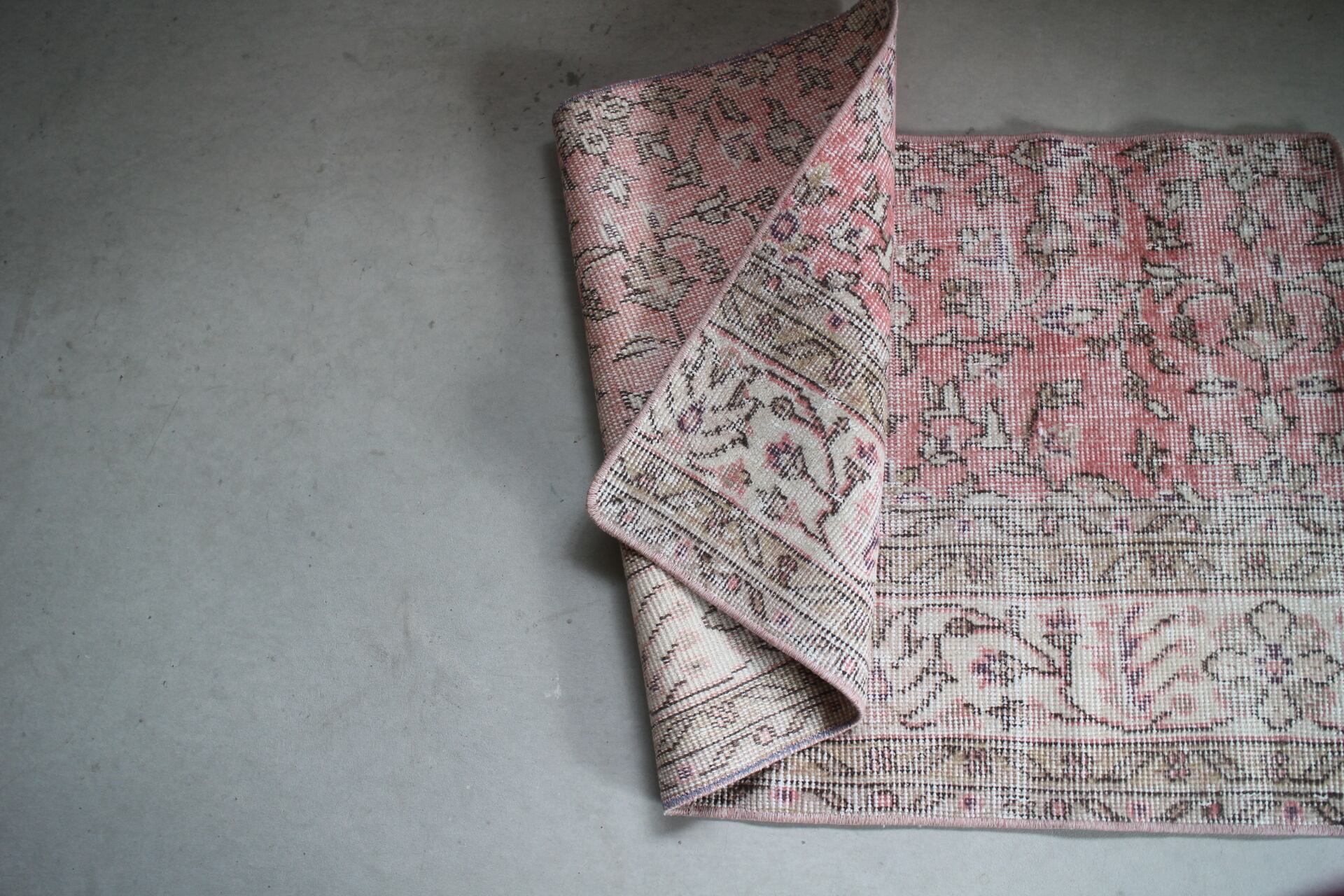 淡いピンクにベージュが入る上品なヴィンテージラグ。