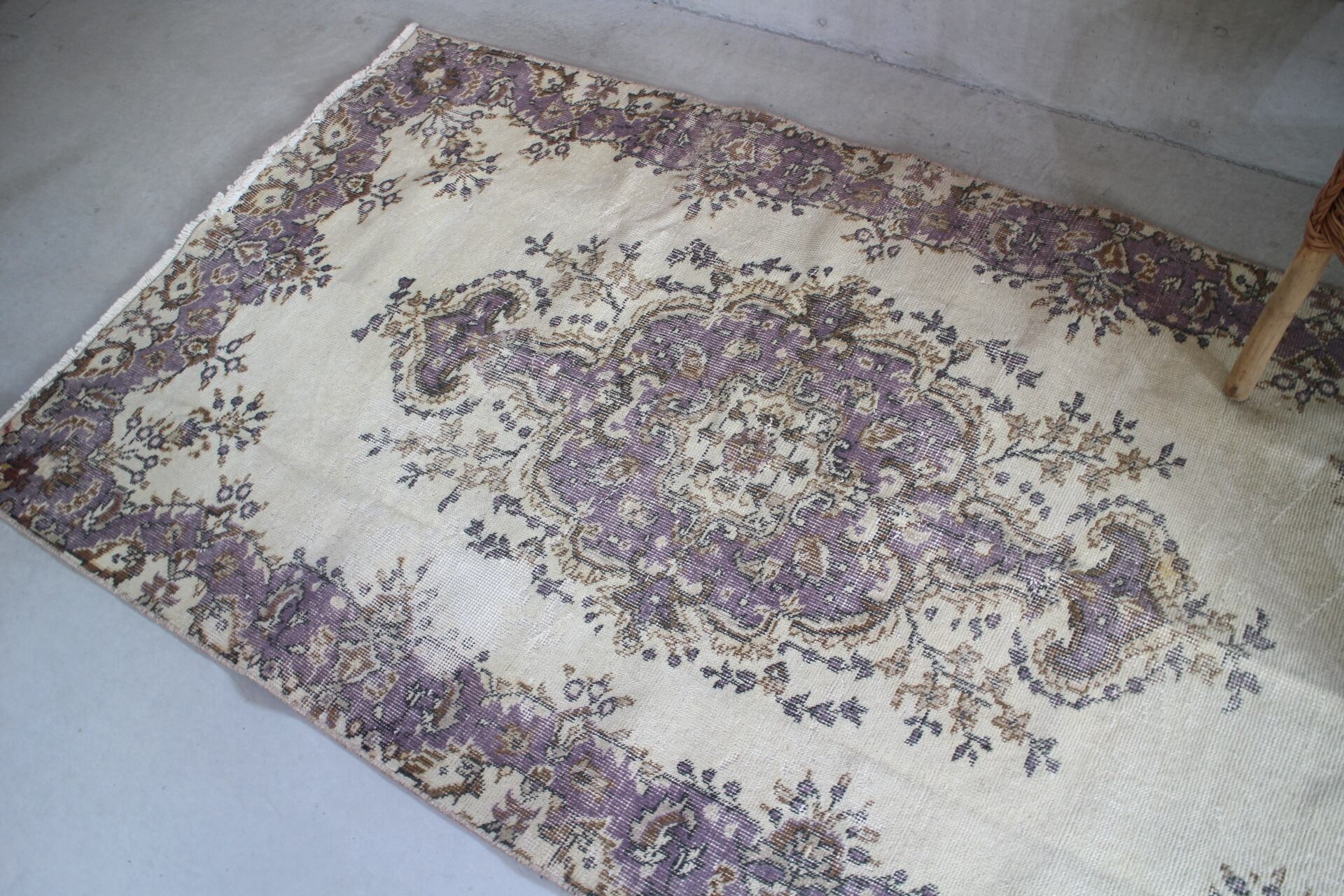 落ち着いたベージュに上品なラベンダーパープルの模様が入るヴィンテージトルコラグ。Leeの記事で拝見した雅姫さんのお部屋のラグと同柄・別色です。シャビーシックな雰囲気できれいめのインテリアにお勧めです。