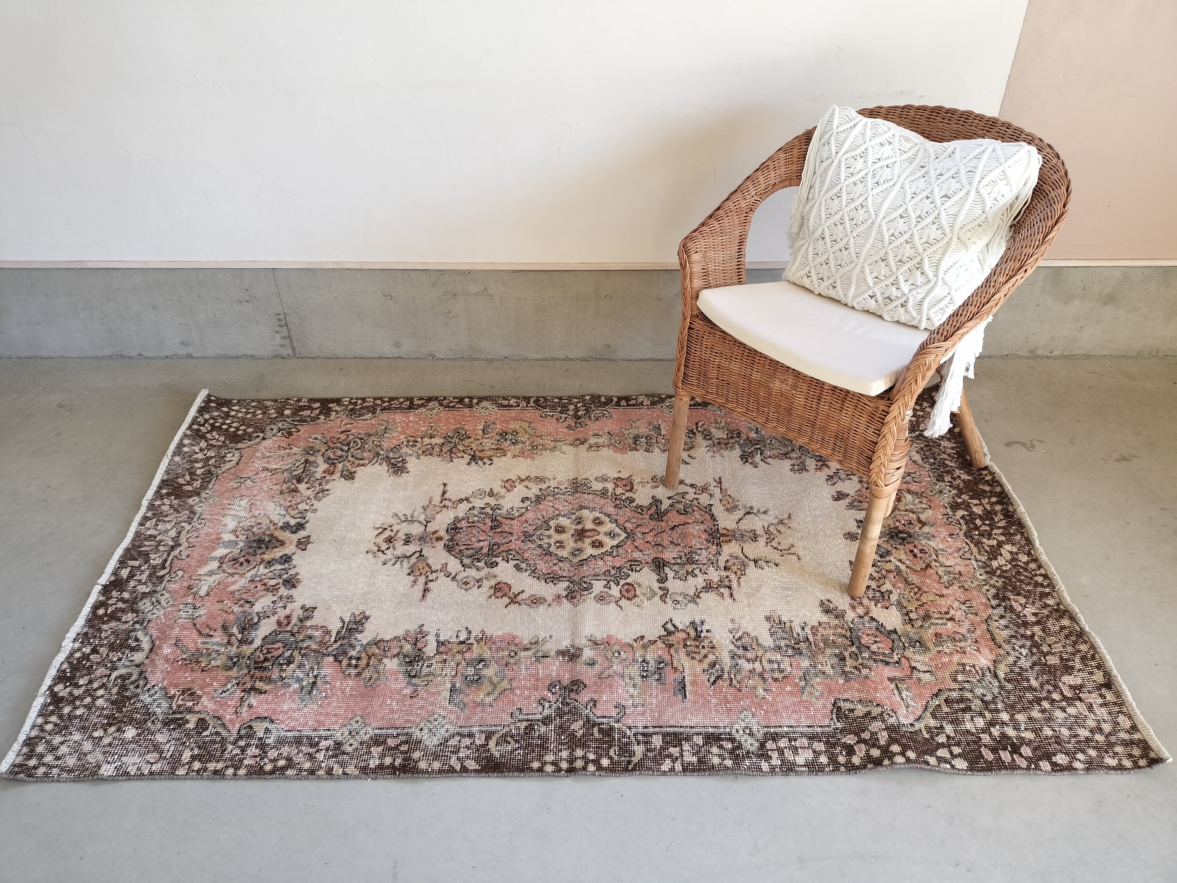 1980年代に織られたヴィンテージのトルコラグ。オーガニックウール、オーガニックコットン(裏糸)を使い、自然染料及び野菜染料で色づけされています。