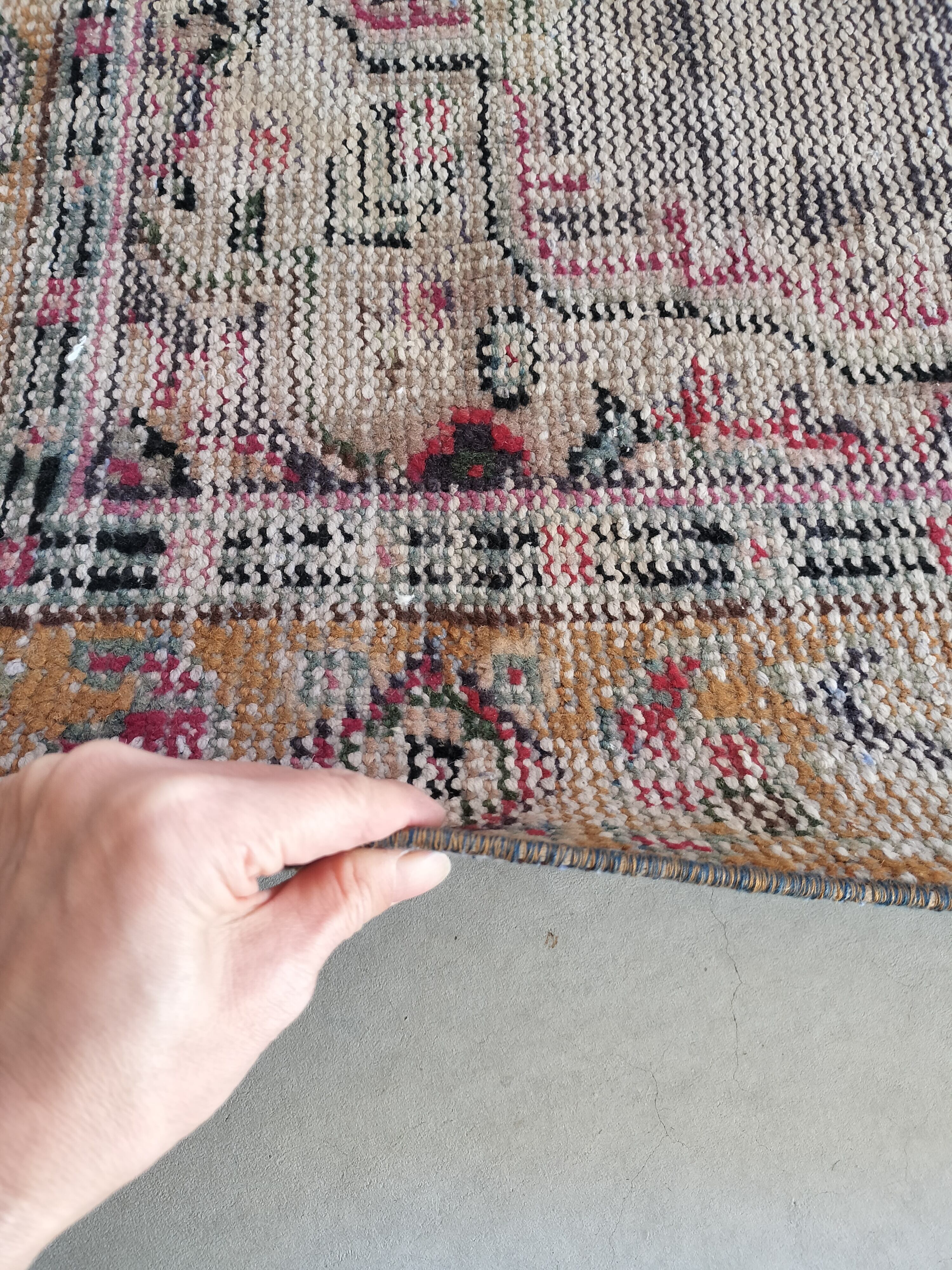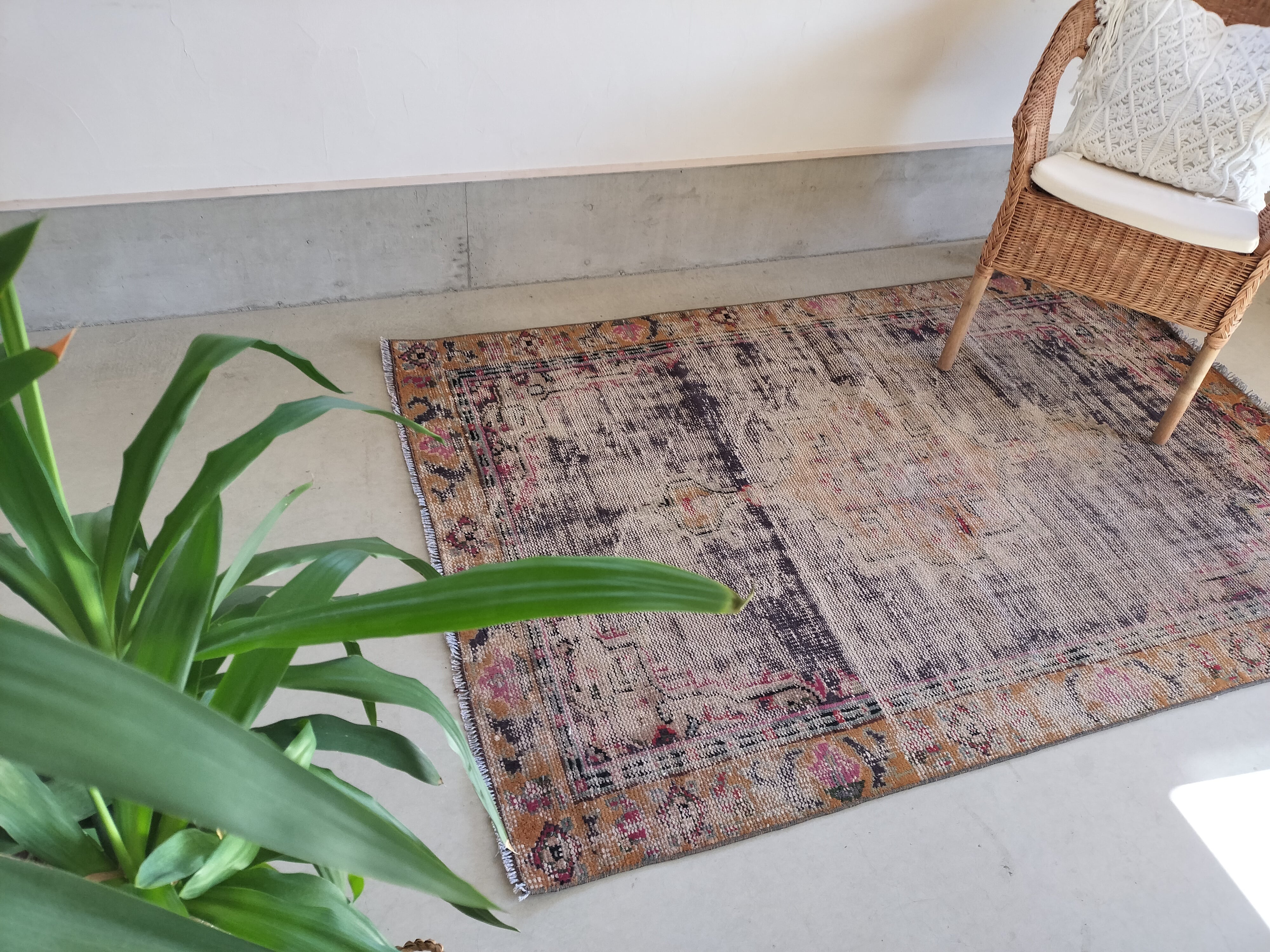 1980年代に織られたヴィンテージのトルコラグ。オーガニックウール、オーガニックコットン(裏糸)を使い、自然染料及び野菜染料で色づけされています。