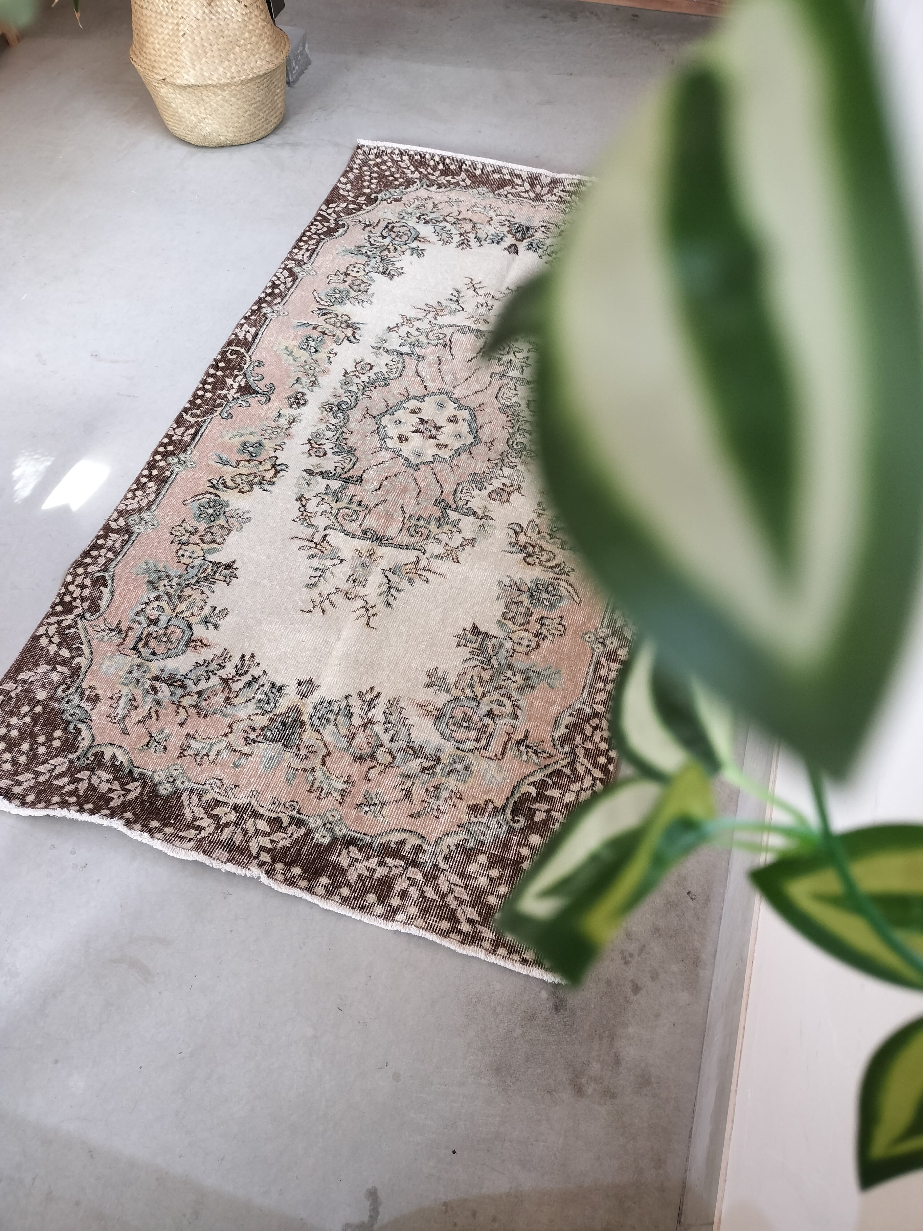 1980年代に織られたヴィンテージのトルコラグ。オーガニックウール、オーガニックコットン(裏糸)を使い、自然染料及び野菜染料で色づけされています。
