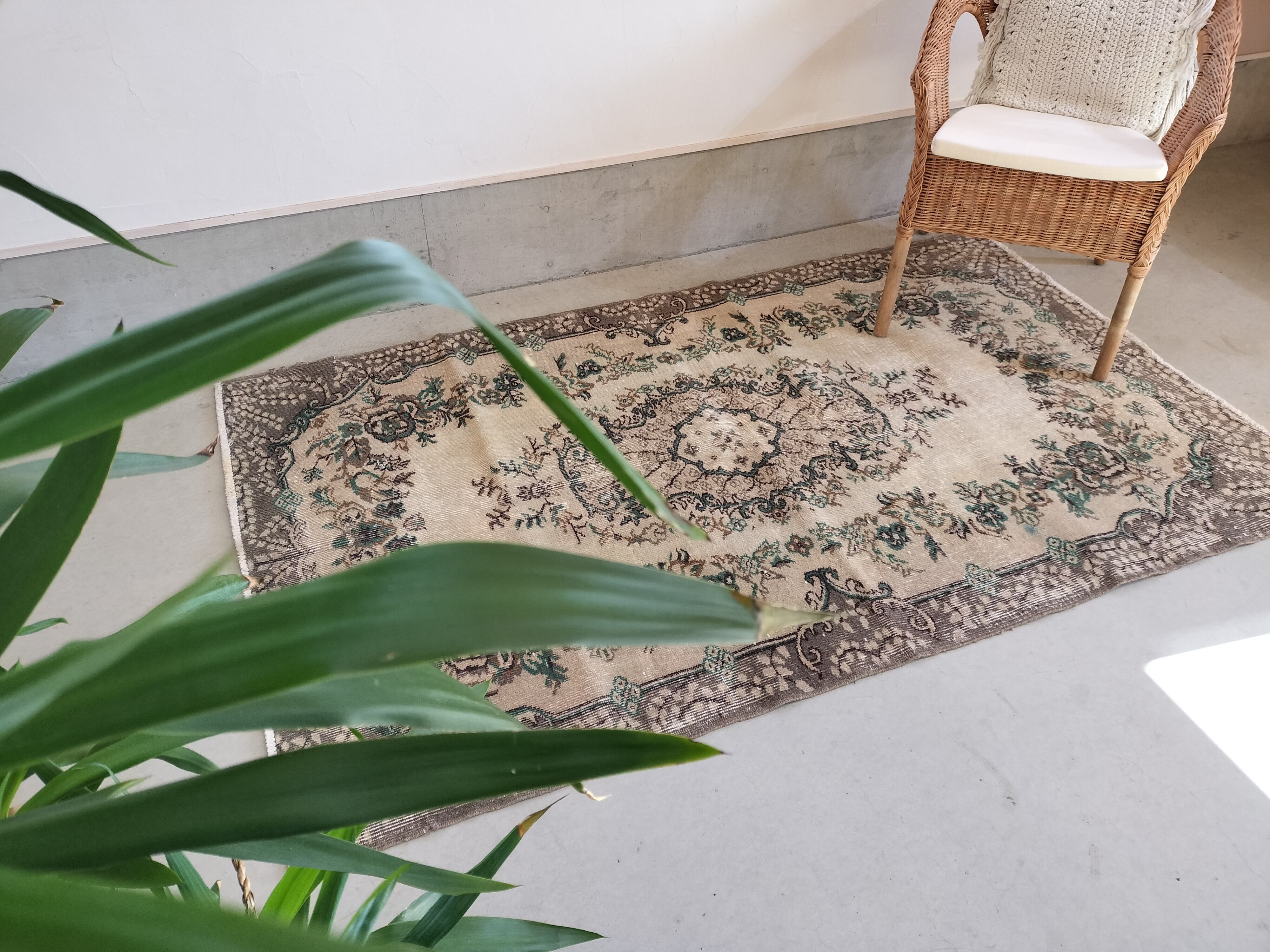 毛足は短くカットされ、季節を問わずにお使いいただけます。アンティークな雰囲気はインドアグリーンやアンティーク家具等とも相性が良さそうです。